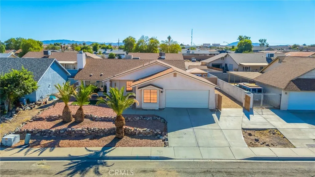 PRICE REDUCED TO SELL FAST!!!!! Welcome to this inviting, and well-maintained 4-bedroom, 2-bathroom home featuring 1,500 square feet, built in 1990. The spacious living room and the kitchen boasts durable tile flooring, ideal for easy upkeep and a cool, inviting feel, wood flooring in the bedrooms a cozy fireplace in the living room, nice kitchen with granite countertops, fresh paint throughout, new stainless steel appliances included ;formal dining room, You will love the backyard, fully fenced, and RV gate. Imagine you, and your family enjoying a nice barbecue in the back patio or the home features central air conditioning and heating. The property is located in a very quiet community, in a culdec-sac. The open desert in front of the property will give you a nice City view. Close proximity to Jack Smith Park, the park features Boat Launching ramp, park, swimming beaches. Property is ready to move in