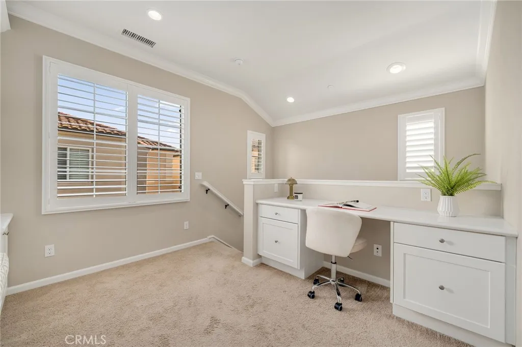 Welcome to 56 Strawberry Grove, a detached residence in the highly desirable Cypress Village community of Irvine. This beautifully maintained 3-bedroom, 2.5-bath home offers approximately 1,567 sq. ft. of light-filled living space designed for comfort and modern functionality. The main level features an open-concept layout with a spacious great room, dining area, and contemporary kitchen showcasing white cabinetry, quartz countertops, stainless-steel appliances, and a large center islandideal for both everyday living and entertaining. Upstairs, the primary suite includes a walk-in closet and dual-sink vanity. Two additional bedrooms share a full bath, and a versatile built-in desk nook with upper cabinets provides the perfect workspace or study area. A full laundry room and thoughtful storage complete the second level. Residents of Cypress Village enjoy access to resort-style amenities including pools, parks, playgrounds, sports courts, and scenic trails. The neighborhood is served by top-rated Irvine Unified schoolsCypress Village Elementary, Jeffrey Trail Middle, and Irvine Highrecognized for academic excellence and community engagement. Conveniently located near shopping, dining, and major freeways, this detached home combines modern design, functional living, and the exceptional lifestyle that defines Cypress Village Irvine.