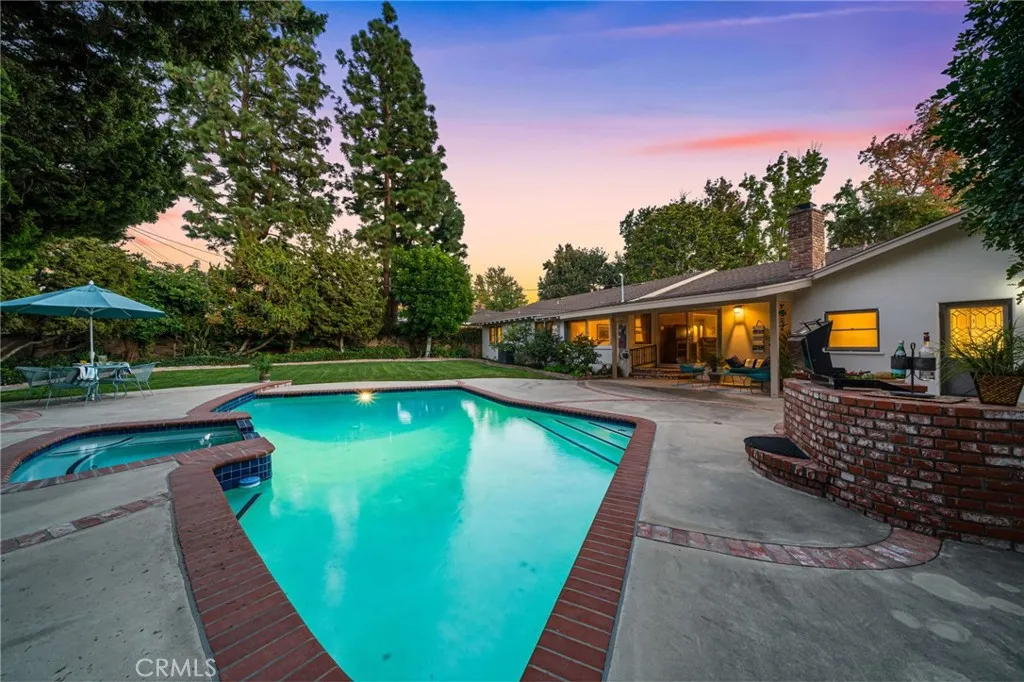 Welcome to Elizabeth Park, built by the Iconic Valentine family in the early 60's, this tract has always been one of the best neighborhoods in Orange! Extra large lot features mature shade trees, a feeling of being away from the big city. The entry has leaded glass door and sidelights that lead to a single story ranch home with a great floorplan. The formal living room has a large sliding door out to the pool and park-like rear yard. There is a mason-built rounded brick fireplace, floor to ceiling with a built-in bookcase/display area. The family room features a large picture window that overlooks the patio and pool. There is an eating area off the kitchen for those stay-at-home meals. The kitchen has the vintage tile that looks like it was installed yesterday with stainless Kitchenaid appliances including a built-in gas range, microwave, electric convection oven and a built-in refrigerator/freezer. This flooplan is classic and functional. There is direct access to an attached 2-car garage with laundry and a utility sink. Behind the garage is a double-door entry to an office and a 3/4 bath, separate from the main house. 3 bedrooms have plantation shutters and custom-built closets with mirrored wardrobe doors. The primary bedroom features an en suite bath with shower, dual sinks and closets. The main bath has a tub/shower accented in tile and glass. The rear yard is a vacation spot all year long. A beautiful pool and spa accented in brick, a custom-built brick BBQ island, seating areas, a covered patio and a 2nd rear yard that is home to the pool equipment, playhouse and gar
