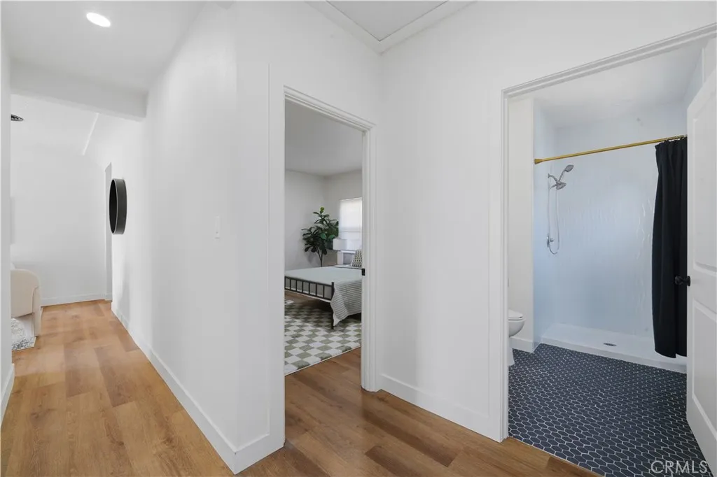 Welcome to this captivating and beautifully updated Spanish-style home located in one of most desirable Anaheim neighborhood, situated across the way from Colony District. This stunning residence offers 4 bedrooms, 2 bathrooms, and 1,450 sq ft of bright, modern living space, all situated on a generous 6,560 sq ft lot. The home makes a memorable first impression with its exceptional Spanish architecture, featuring a classic tile roof, white stucco exterior, and charming gated walkway framed by vibrant flower beds. This historic character is beautifully preserved, creating truly unique curb appeal. Step inside to a move-in ready interior that blends classic charm with contemporary comfort. The main living areas showcase beautiful wood flooring and a fresh, crisp white color palette, creating a bright and airy atmosphere. The functional kitchen is well-appointed with charming wood cabinetry and sleek grey countertops, providing a warm and efficient space for cooking and gathering. Washer and dryer hookups are conveniently available. This property excels in utility and outdoor enjoyment. The backyard features a delightful separate covered lounge area, offering a perfect, shaded spot for relaxing, dining al fresco, or entertaining guests. Add an ADU for multi-generational living. Great potential valuable asset is the spacious detached 4-car garage, which includes abundant built-in shelving and storage, providing excellent potential for a workshop, home gym, or secure parking. Residents enjoy proximity to local amenities, schools, and parks, with easy access to major thoroughfare
