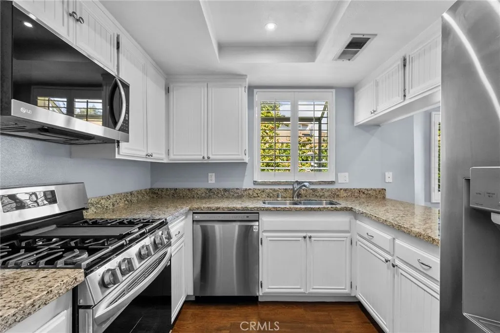 IF YOU MISSED IT THE FIRST TIME, THIS IS YOUR MOMENT. NEW PRICE! This rare upper end unit in one of the communitys most desirable locations offers privacy, natural light, and a spacious layout that lives like a single-family home. Featuring 3 BEDROOMS PLUS a LOFT, soaring 15+ ft vaulted ceilings, and a beautifully remodeled kitchen with granite counters and NEW LG SMART STAINLESS STEEL APPLIANCES. Upgraded bathrooms, NEW DUAL PANE WINDOWS, NEW DUAL PANE SLIDING GLASS DOOR, PLANTATION SHUTTERS, newer HVAC & water heater, fresh paint, and NEW full-size Maytag washer/dryer. Enjoy a private balcony overlooking the greenbelt and an oversized private 2-car garage. Move-in ready and positioned to sell. Resort-style amenities include pools, spas, tennis courts & lush greenbelts. Prime location near shopping, dining, top-rated schools, trails, freeway & Metrolink. No Mello Roos. HOA covers water, trash, exterior maintenance & insurance. Serious buyers, this one wont last. Schedule your showing today!