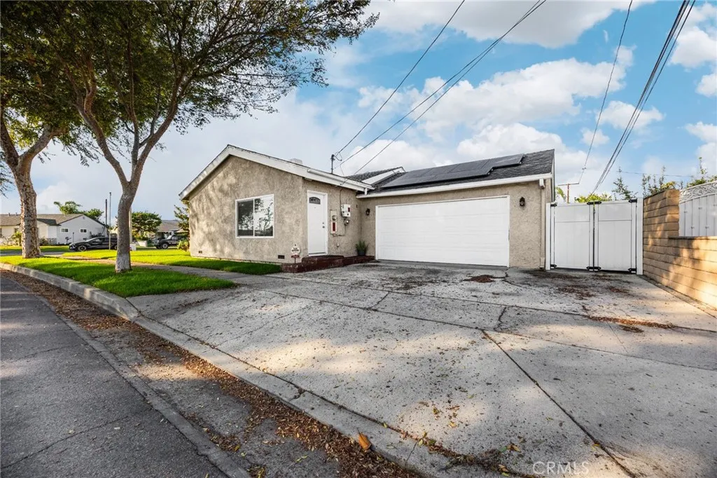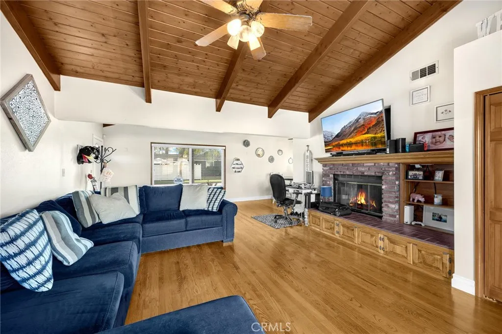 Welcome to this charming home with exceptional curb appeal, nestled in a pride-of-ownership neighborhood. Offering 3 spacious bedrooms with wood flooring, including a primary bedroom with direct access to the backyard. Both the guest and primary bathrooms have a clean, modern look. The bright living room showcases a large bay window and warm wood flooring, while the formal dining area also features a bay window and a cozy brick fireplace, positioned just off the kitchen for seamless flow. The spacious kitchen includes wood cabinets, granite countertops, ample storage, and a charming country-style door that opens directly to the pool area, perfect for effortless indoor-outdoor entertaining. The indoor laundry area is conveniently located just behind the kitchen. As you enter the family room, youll find a versatile space ideal for a second dining space or office work area. The family room offers a second fireplace and a warm, rustic ambiance highlighted by vaulted wood ceilings, creating the perfect environment to unwind, enjoy movie nights, or host gatherings. Beautiful wood French doors open to the covered patio and sparkling pool, surrounded by low-maintenance landscaping, an ideal setting for both relaxing and entertaining. The home also includes solar panels to help keep your electric bill low. It's a must-see! Professional photos to follow.