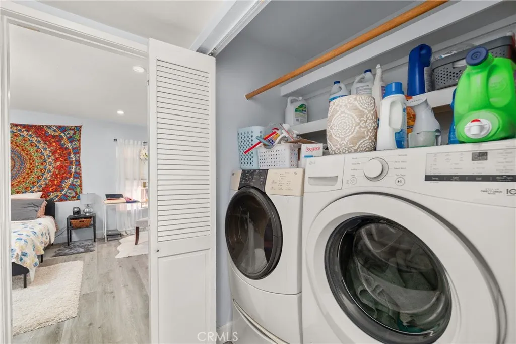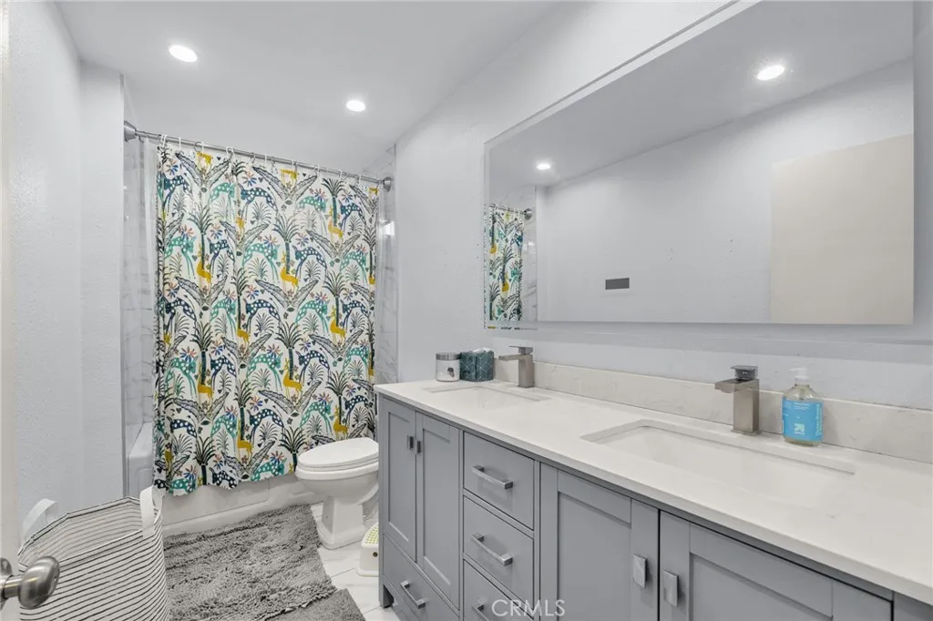 Experience the convenience of this tastefully updated single level condo centrally located in the city of Anahiem. This unit offers 2 generously sized bedrooms, laminate flooring throughout, recessed lighting, and more. The kitchen has been recently updated and is perfect for preparing all of your family meals. The bathrooms feature new vanities, quartz countertops with the hallway bath also featuring bluetooth mirrors and double sinks. The patio is large and private making it perfect for entertaining and allowing you private access to your 2 car garage. If you are looking for the perfect home in a great location with easy access to freeways, shopping, parks, and entertainment this is it!