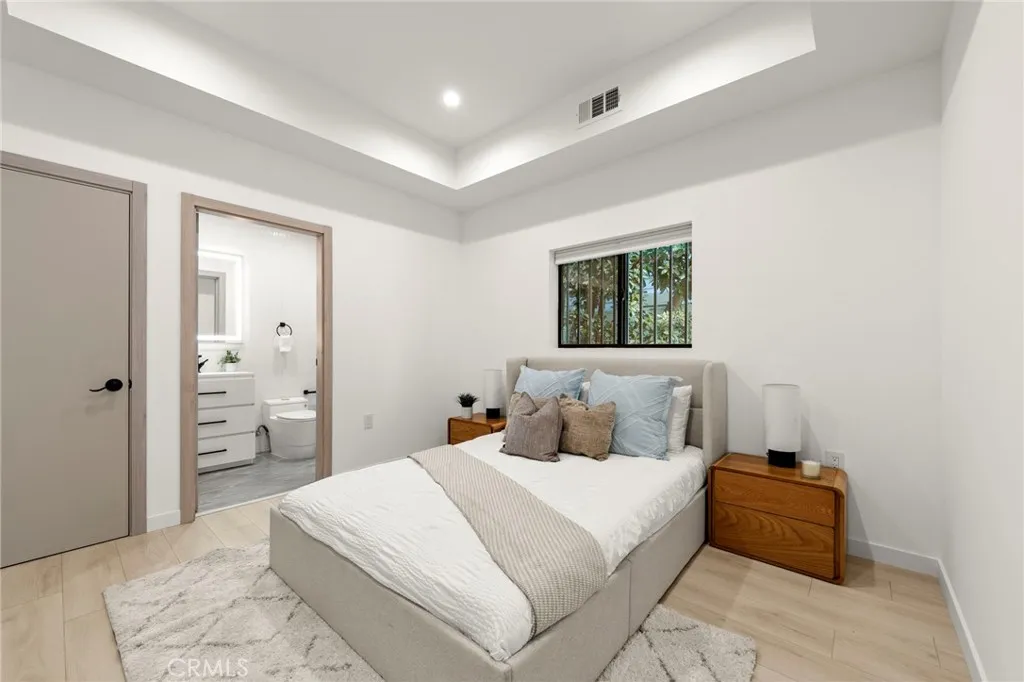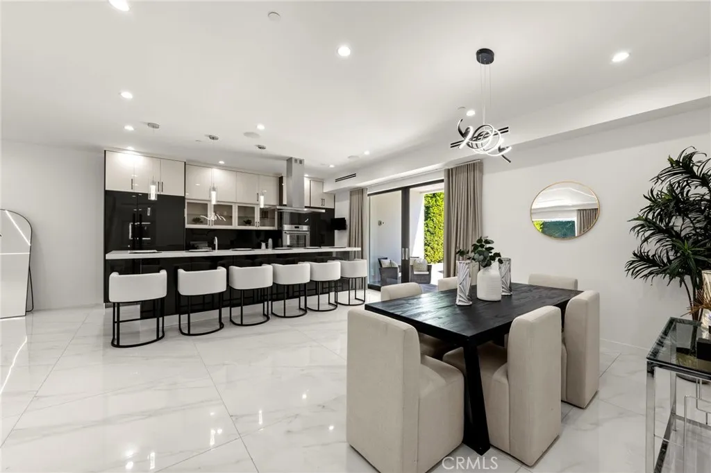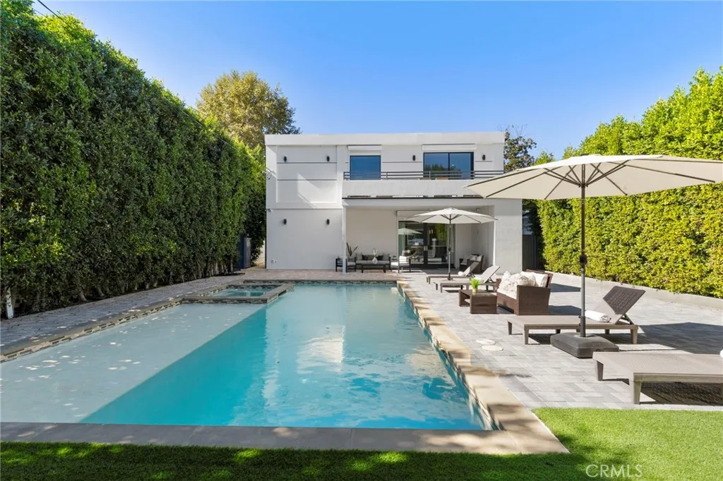 2024 Modern Architectural with Pool, Spa, Designer Closet, Paid Solar & Smart-Home Luxury in Carpenter School District. This 2024 modern architectural residence defines sophistication, innovation, and comfort in one of Studio Citys most desirable neighborhoods. Located within the highly rated Carpenter Community Charter School District, the home offers nearly 2,900 square feet of contemporary living space behind sleek automated gates, combining privacy, sustainability, and elegance with seamless indoor-outdoor flow. The open-concept main level is anchored by a dramatic living area featuring a linear fireplace and floating ceiling that enhance both scale and comfort. The dining area transitions effortlessly into the chefs kitchen, showcasing a waterfall-edge quartz island, high-gloss European cabinetry, and premium built-in appliances. Every room is designed with modern precision, abundant natural light, and a harmonious sense of balance. Upstairs, the primary suite serves as a private sanctuary with a large terrace and a spa-inspired bathroom featuring a freestanding soaking tub, frameless glass shower, floating double vanity, and LED-lit mirrors. The custom walk-in closet rivals a high-end boutique, with glass-enclosed shelving, a central island, soft-close drawers, and integrated lighting. A secondary suite with its own private balcony and designer finishes completes the upper level. Sliding glass doors open to a tranquil backyard oasis surrounded by tall ficus hedges for complete privacy. The outdoor space features a fully automated pool and spa, multiple lounge areas, a