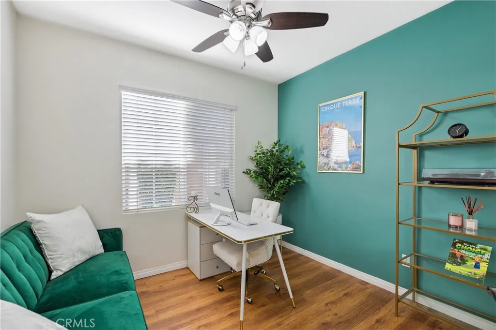 Gorgeous 4 bedroom and 3 full bath, Valencia West Creek townhome with LOFT and FULL DOWNSTAIRS BED AND BATH +2 car attached garage! This corner unit is one of the largest models in the community, this home is just a short distance from Rio Norte junior high school, shopping, dining, and some of Valencias finest amenities! The inviting front porch opens to the charming living room accented with shutters, recessed lighting, ceiling fans, neutral paint and a lovely fireplace! The open-concept kitchen features beautiful cabinetry, granite countertops and a breakfast bar that opens to the spacious dining area, making it ideal for everyday living and entertaining! The convenient DOWNSTAIRS BEDROOM AND FULL BATH provide flexibility for guests or multi-generational living options, along with the convenient indoor laundry room! Upstairs, complete with fresh neutral carpeting, the cozy loft offers the perfect space for a home office, gym or study area! 3 additional Generously sized upstairs bedrooms include the comfortable primary suite with excellent natural light, a spacious ensuite bathroom with dual sinks, ample storage and a huge walk in closet! The two additional upstairs bedrooms include mirrored wardrobe closet doors and share spacious hall bath with a shower tub combo! Enjoy the charming, private backyard with built in seating and sail shade patio cover ideal for BBQs, relaxing, or outdoor dining! Located in one of Valencias premier neighborhoods, West Creek offers outstanding community amenities including a resort-style pool, spa, park, clubhouse, and scenic walking paths!