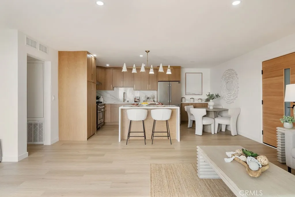 Stunning and fully renovated, this beach-facing condo with a private outdoor patio has been reimagined from top to bottom with exceptional attention to detail. The 2-bedroom, 2-bath residence offers 1,034 sq. ft. of modern coastal luxury, showcasing brand-new interiors crafted with contemporary elegance and smart functionality. Step into a bright, open layout featuring all-new windows, exterior slider doors, and an upgraded front entry door. The home includes a complete HVAC system with new ducting, new flooring throughout, upgraded baseboards and trim, stylish hardware, recessed lighting, and designer fixtures. At the heart of the home is a chef-inspired kitchen appointed with custom white oak cabinetry, a waterfall-edge quartz island, and a premium appliance suite. Both bathrooms were rebuilt down to the studs and finished with new waterproofing, modern tilework, high-end fixtures, custom glass enclosures, and beautifully designed vanitiescreating a spa-like experience. Enjoy the comfort and confidence of a comprehensive renovation, paired with the serenity of your private patio just steps from the sand. The well-maintained midrise community offers lush landscaped gardens, a barbecue area, elevator access, secure garage parking with an assigned space, laundry facilities, a security gate, and a full security systemperfect for an effortless, lock-and-go lifestyle. Experience the best of coastal living, with boutique shopping, popular restaurants, and beachside strolls just moments from your door. Call for a showing today!