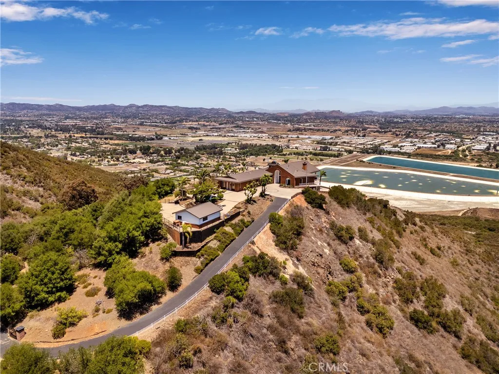 One-of-a-kind estate with amazing sunrises and shimmering nighttime city light views. The best view property in DeLuz. Priced way below licensed appraiser estimate. ASK THE LISTING AGENT ABOUT SELLER FINANCING !! HIGHLY SECURE PROPERTY with 10 ft. entry gates and iron perimeter fencing. EXISTING RENTAL INCOME. Property has 2 HOMES on 23 PRISTINE ACRES that are only 7 minutes to both Old Town Temecula and Murrieta. Main home is 5,050 sq. ft. with 24 ft. ceilings in living room, 4 bedrooms, 4 baths. A 800 sq. ft. entertainment / gym area with views. Both homes are fully remodeled. Second home is 1,560 sq. foot with 3 bedrooms and 2 baths with city views. Second home accessibility has a wheel chair ramp. Each home features Viking appliances and new HVAC. Low-cost maintenance and utilities. Self-sustaining trees and vegetation. Perfect property for horses, additional homes or your own winery. No neighbors. Property has a rare 2- inch agriculture water meter line if needed. Low cost CA Fair Plan Insurance due to structural design features. Excellent investment upside appreciation potential !!