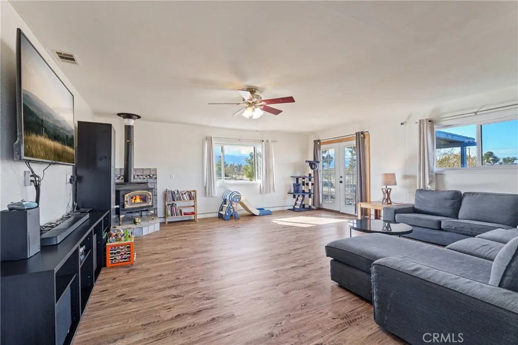 Welcome home to wide-open spaces, peaceful country living, and stunning panoramic views! This spacious 3-bedroom, 2-bathroom home offers 2,016 sq. ft. of comfortable living on 2.3 fully fenced and cross-fenced acres, complete with an automatic front gate for privacy and convenience. Step inside to find multiple living spaces including a large living room, cozy family room, formal dining area, and an upgraded kitchen perfect for gathering and entertaining. Enjoy the warmth of the wood-burning stove on crisp evenings and the efficiency of the whole-house fan on warm summer days. Outside, relax on the front and back porches, take in the incredible mountain and desert views, and take advantage of the extra-large shed for storage, tools, or hobbies. Theres plenty of room for animals, toys, and all the benefits of true rural lifestyle. If youve been dreaming of quiet country living with space to breathethis one is a must see!