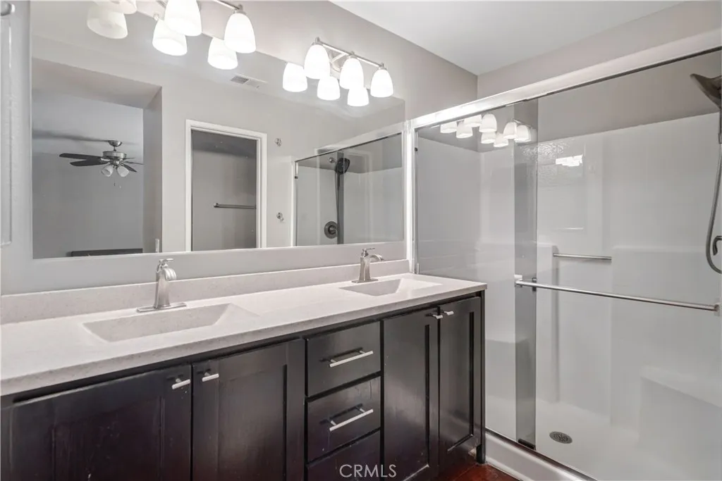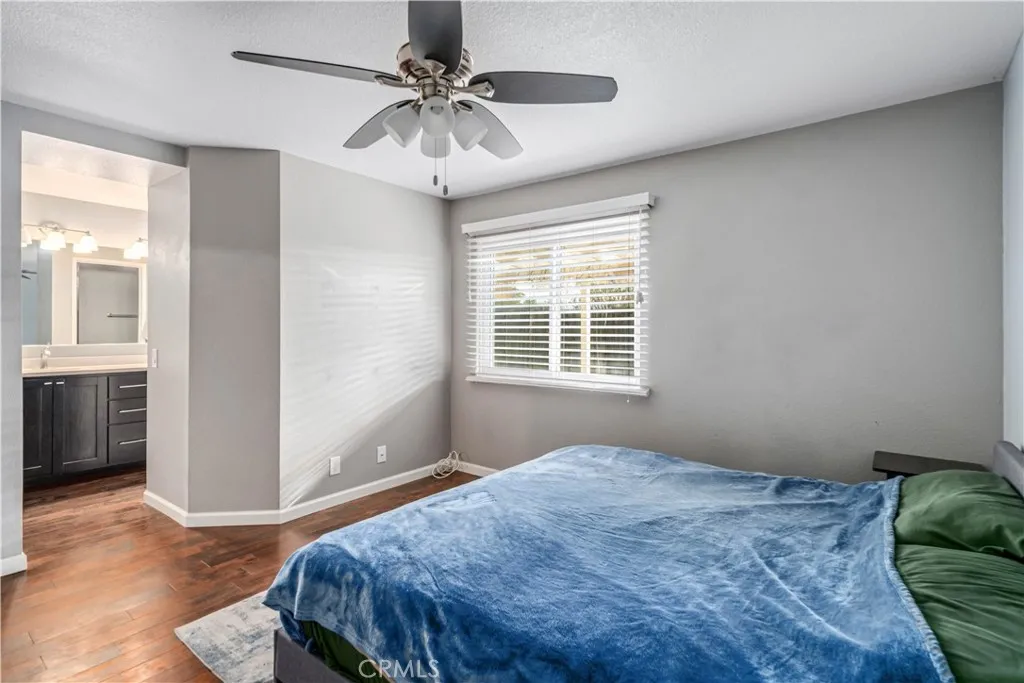 Welcome to the light-filled formal living and dining room, featuring vaulted ceilings, laminate wood flooring, and an attached 2-car garage with direct access. The open layout seamlessly transitions into a second living area, currently used as a dining room, which flows effortlessly into the upgraded kitchen. The kitchen boasts designer two-tone cabinetry, stainless steel appliances, a French door leading to the backyard, and a cozy fireplace with a marble-look surround. This beautifully updated home comes with an impressive list of upgrades, including newer windows, a newer heating and AC system with updated ducting, a newer roof, updated flooring, designer interior paint, and a water filtration/softener system. The spacious primary bedroom features a wall-length closet and an additional closet in the en-suite bath. The refreshed primary bathroom includes a dual-sink vanity, a large walk-in shower, updated fixtures, and fresh paint. Both secondary bedrooms are generously sized with ample closet space and share a guest bathroom with a vanity featuring a composite countertop and a designer backsplash. Step outside to your private backyard oasis, perfect for relaxing or entertaining. It features a covered patio, low-maintenance landscaping, and custom concrete-curbed planters, all creating a peaceful setting to take in beautiful sunrises and sunsets. Won't last long call today!!