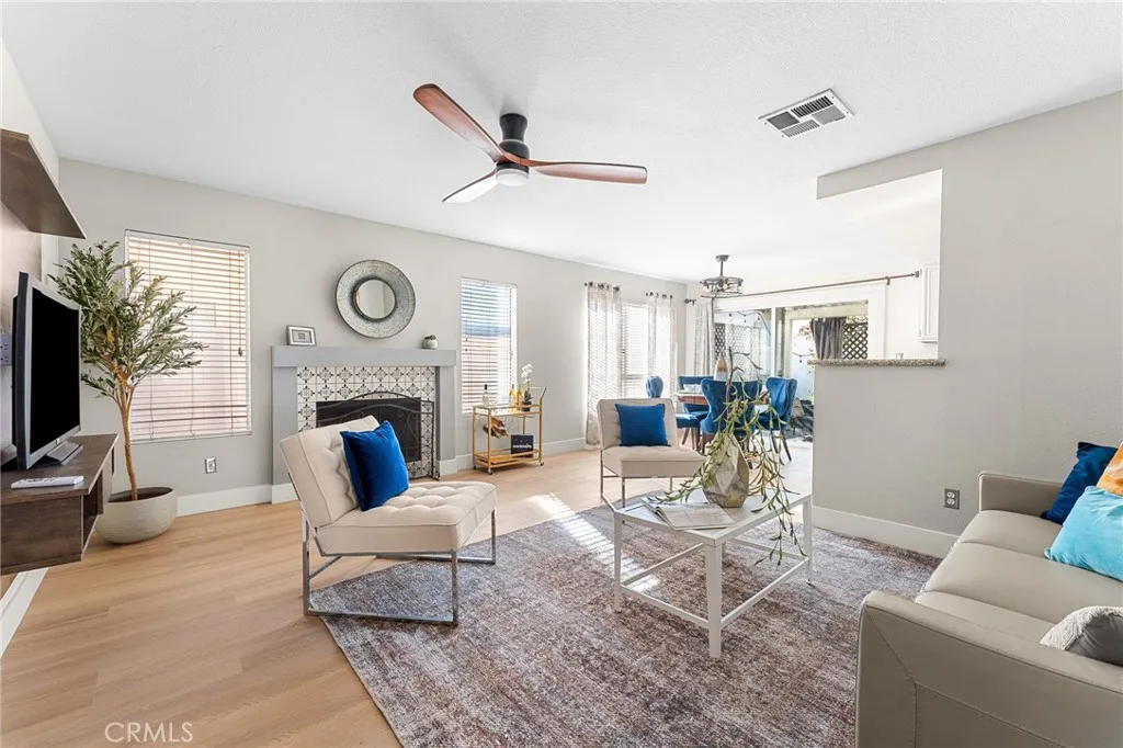 Welcome to this beautifully updated and truly move-in ready 4-bedroom, 3-bath home offering nearly 2,000 sq ft of comfortable living space, including a 3-car garage and a layout perfect for both entertaining and everyday living. Step inside to discover brand-new LVP flooring, 5-inch baseboards, and a charming interior that features a spacious formal living room with soaring ceilings, abundant natural light, and tasteful updates throughout. The kitchen opens seamlessly to a cozy family room with a fireplace, recessed lighting, and sliding glass doors leading to a covered patio surrounded by mature trees and new vinyl fencingcreating a private and peaceful outdoor retreat. A convenient downstairs bedroom is ideal for guests or a home office. Additional highlights include newer stainless steel appliances, updated light fixtures, ceiling fans, new roof underlayment, thoughtful touches throughout, and all appliances includedwasher, dryer, and refrigerator for added convenience. Located in the highly sought-after Redlands Unified School District, this home is part of a desirable HOA community offering amenities such as a pool, spa, and picnic area. Dont miss this opportunity to own a beautiful home, move-in ready home in a fantastic location!