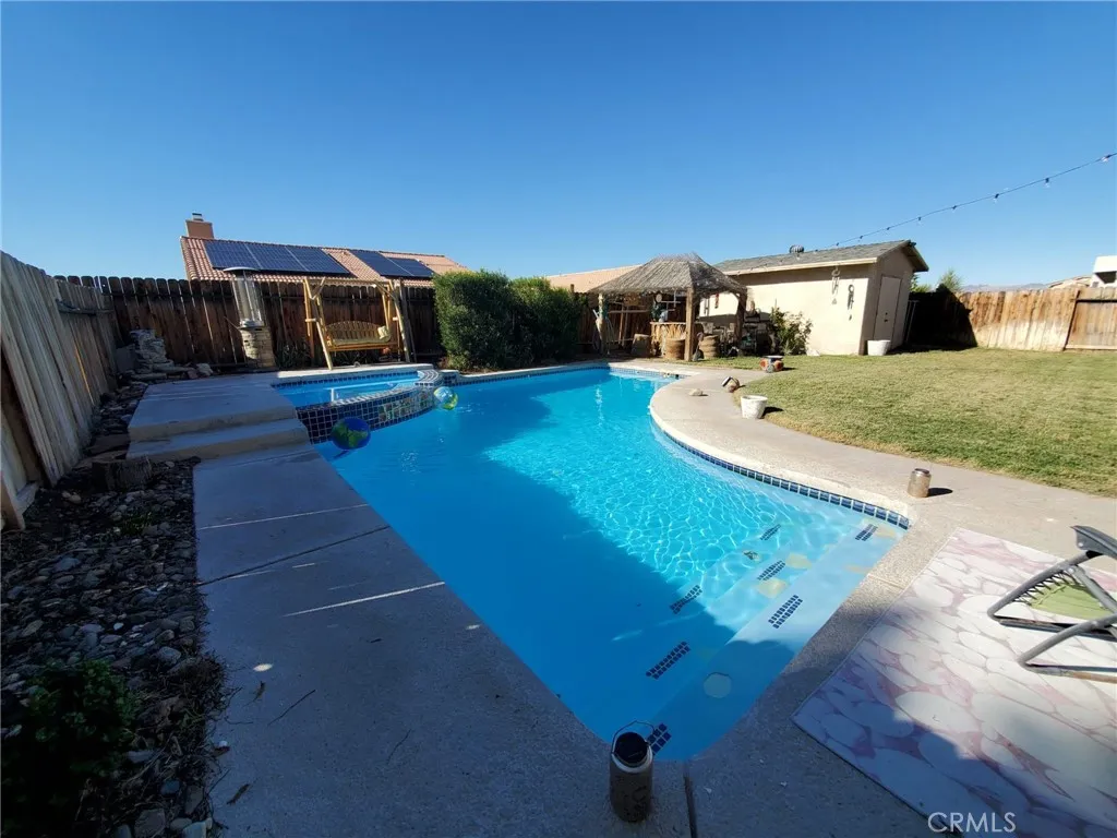 Escape to your private retreat in the sunny Palo Verde Valley with this inviting 2-story gem, blending classic comfort with modern upgrades. Four bedrooms, 3 bathrooms. Built in 1994 and lovingly maintained, this 2,130 sq ft haven offers living across two levels, perfect for those seeking space and serenity. Downstairs welcomes you with a cozy additional room featuring a charming fireplace, perfect for movie nights, reading nooks, or casual gatherings, plus a convenient guest bedroom and full bath. The heart of the home shines in the updated kitchen, featuring sleek granite countertops, tiled flooring for effortless cleanup, and a brand-new dishwasher ready for everyday meals. Arched ceilings add a touch of architectural elegance throughout. Ascend the carpeted staircase to the upper level, where three additional bedrooms await, including a luxurious primary suite thats a true standout: expansive layout, walk-in closet, a cozy fireplace for chilly desert evenings, and an ensuite bath with tiled floors. The other bedrooms share a well-appointed hall bath, all with plush carpet for added warmth. A convenient upstairs laundry room pairs perfectly with a dedicated linen closet just across the hall. Outside, entertainment takes center stage with a sparkling heated swimming pool plunging to 6 feet deep, complete with an integrated spa for ultimate relaxation under the stars, and a spacious patio perfect for barbecues, sunbathing, or poolside lounging. Start your own citrus tradition, two young fruit trees (a tangelo and a Meyer lemon) are already thriving in Blythes perfect growi