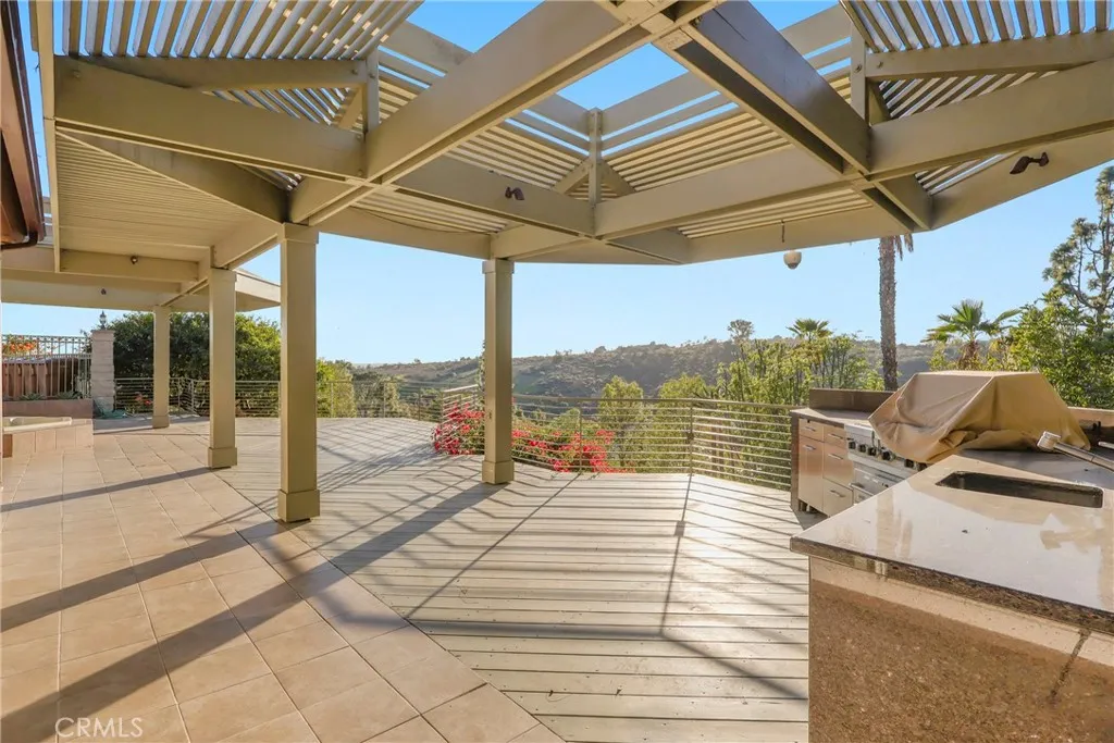 Set at the end of a tranquil cul-de-sac and surrounded by nature, this semi-custom estate offers a rare blend of architectural charm, thoughtful upgrades, and true California indooroutdoor living. Situated on a premium view lot of over 30,000 sq. ft. (nearly an acre), the property delivers expansive living with abundant natural light, lush privacy, and quiet luxury at every turn. Step through the grand double door entry and into beautifully connected living spaces ideal for gatherings and entertaining. The heart of the home is the gourmet kitchen, complete with a built-in refrigerator and generous countertop spacean entertainers dream that flows seamlessly into the living room and out to the large back deck for al fresco dining and sunset lounging. A dedicated home office or library nook offers flexible space for remote work or creative projects or business meetings. The private primary suite is a true retreat, featuring direct access to an oversized custom bathroom youll enjoy for years to come. Outdoors, discover your own personal oasis: a peaceful pond and waterfall enhance the curb appeal, while the expansive back deck features an in-deck jacuzzi perfectly positioned to soak in the views. The rear grounds include a large open green areaideal for a future putting green, garden expansion, or additional play space. The home also includes a spacious family room with a cozy fireplace and built-in entertainment shelving, perfect for holidays and movie nights. Located near scenic Laguna Lake, Coyote Hills trails, and top-rated Fullerton schools, this estate offers unmatched pr