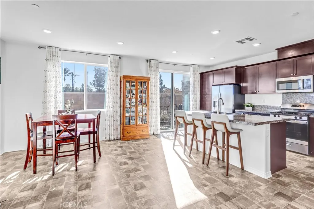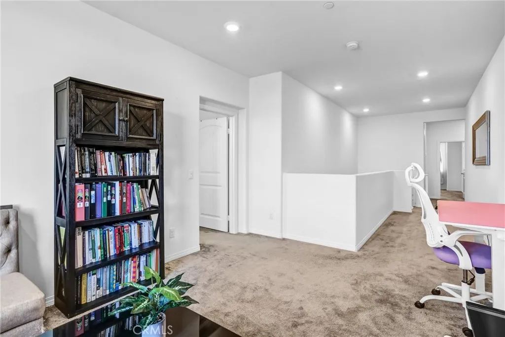 Woodridge at Gabion Ranch in North Fontana offers a sophisticated two-story home, boasting 1,829 square feet of well-designed living area. The layout includes three bedrooms, two full bathrooms, and an extra quarter bath. On the upper floor, there is a primary suite with a private bathroom and walk-in closet, as well as additional bedrooms, a second bathroom, a spacious loft, and a separate laundry room. The kitchen features a large island, granite countertops, and custom cabinets, all flowing into the great room. Interior details include recessed lighting, ceiling fans, tile floors, and carpeting throughout. The property is equipped with several energy-efficient upgrades, such as ENERGY STAR appliances, high-efficiency heating and cooling units, tankless water heaters, leased solar panels, programmable thermostats, and smart home technology to help reduce utility costs and minimize environmental impact. Outside, a private patio is ideal for barbecues, and the roomy two-car garage provides ample space for parking and storage. Gabion Ranch distinguishes itself as one of Fontanas leading communities, offering residents exclusive access to amenities like clubhouses, resort-style pools, event venues, sports courts, parks, playgrounds, and a dog park. Take advantage of this opportunity to own an exceptional home!