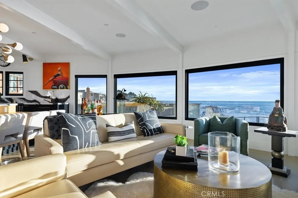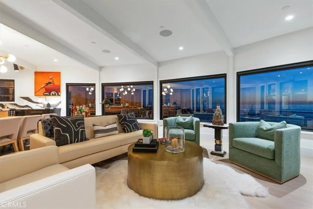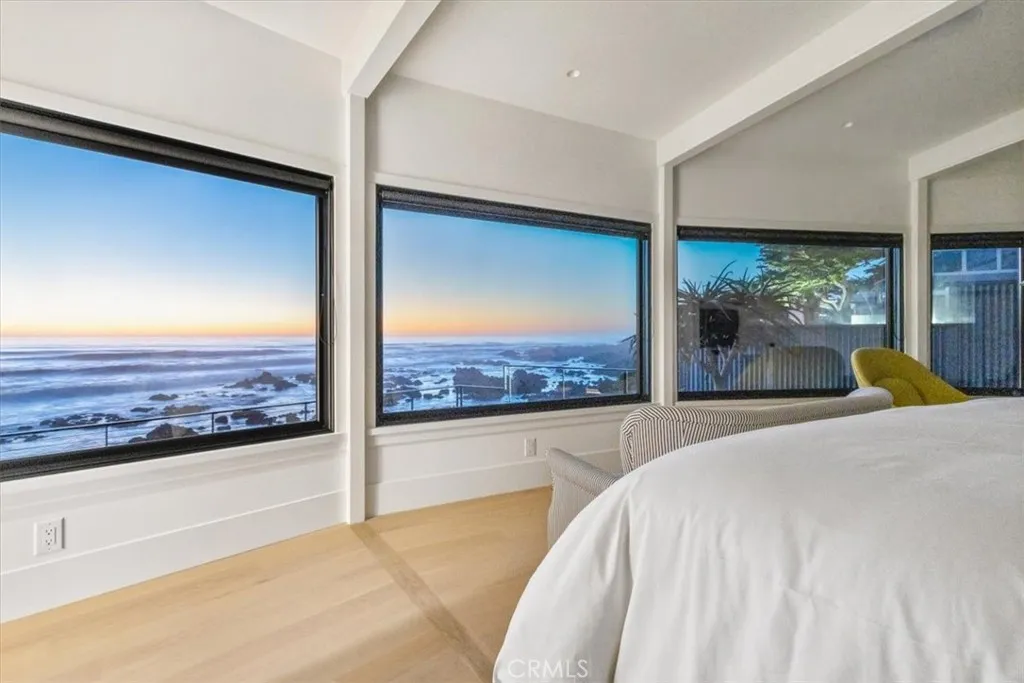 Oceanfront Mid-Century Modern Estate Main Residence and Guest Home Privately set behind a gated entrance on Cambrias coveted Sherwood Drive, this architecturally curated oceanfront estate blends iconic mid-century design with a complete coastal modern transformation and full renovation. The sophisticated single-level main residence embraces dramatic, panoramic ocean and white-water views, while the privately situated guest home, just steps from the waters edge and enhanced by the soothing sound of the surf, offers a serene sense of separation. Between 20202022, the entire estate was re-envisioned and renovated in collaboration with a well-respected architect and custom builder. The home now showcases refined finishes, warm modern materials, and a gallery-inspired aesthetic. Signature mid-century architectural elements including the curved wall, semi-circular glass line, exposed beams, and original floor lines were preserved and enhanced, grounding the homes sculptural presence along the coastline. Inside the main residence: Raised ceilings with exposed beams and expansive picture windows, chef-caliber kitchen with Wolf appliances and waterfall island, custom cabinetry, designer lighting, artisan fixtures, and wide-plank flooring, showpiece gas fireplace, new roof, windows, doors, and refined finishes, new HVAC system with heat and air conditioning, updated plumbing and electrical, new powder bath and discreet laundry area. The guest home mirrors the same sophisticated modern design with its own private entry and beautifully finished interior, an ideal space for hosting or