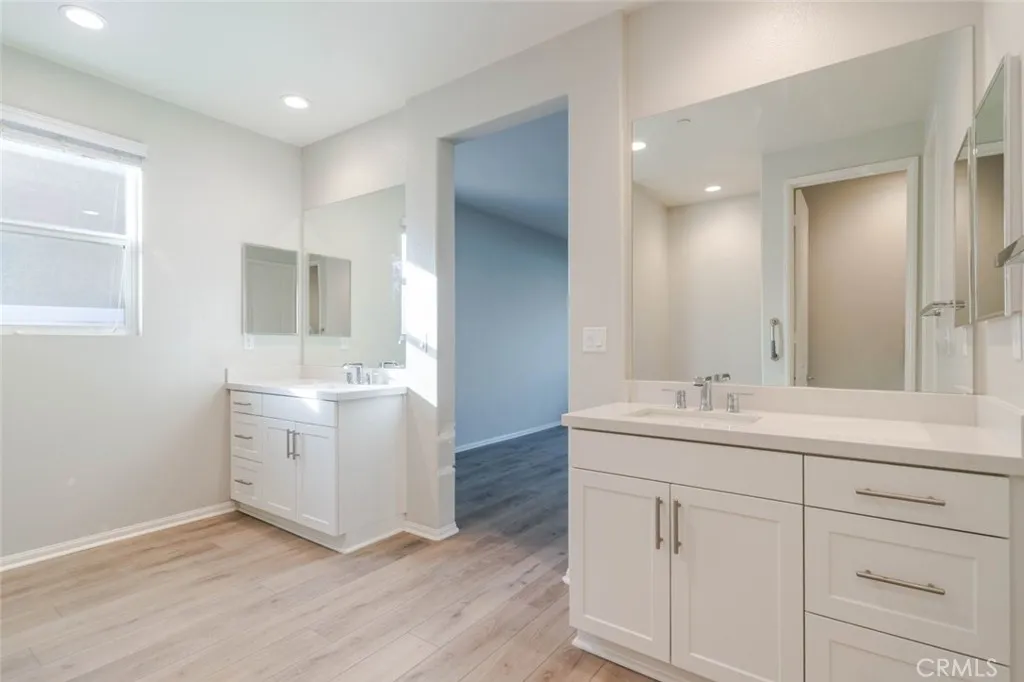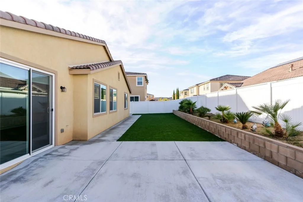 Welcome to 2107 Helconia Court, Palmdale, CA 93551. A modern, single-story home built in 2021, nestled in a quiet cul-de-sac within a newer community with no HOA. This beautifully upgraded 3-bedroom, 2-bath residence offers 2,218 sq ft of open-concept living space on a spacious 7,070 sq ft lot. Inside, an airy floorplan filled with natural sunlight is enhanced by laminate flooring throughout, recessed lighting, and blinds installed across the home. The expansive kitchen features extended countertops, ample cabinetry, a large pantry, and stainless steel appliances including the stove, dishwasher, and refrigerator. The primary bedroom offers comfort and sophistication with a spacious walk-in closet, a built-in large walk-in shower, and thoughtful owner-added upgrades. Enjoy year-round comfort with central AC and heat, paid-off solar, and a well-designed layout that includes a dedicated laundry room with washer and dryer included. Outside, the backyard features partial concrete work already completed, ideal for low-maintenance outdoor living and future customization. The property also includes a two-car garage and a sprinkler system for added convenience. This home blends contemporary style with practical functionality and is truly move-in ready with numerous upgrades already completed.