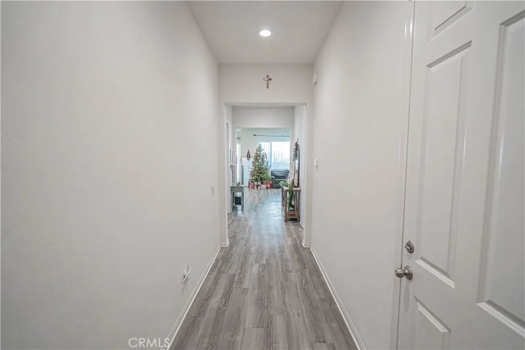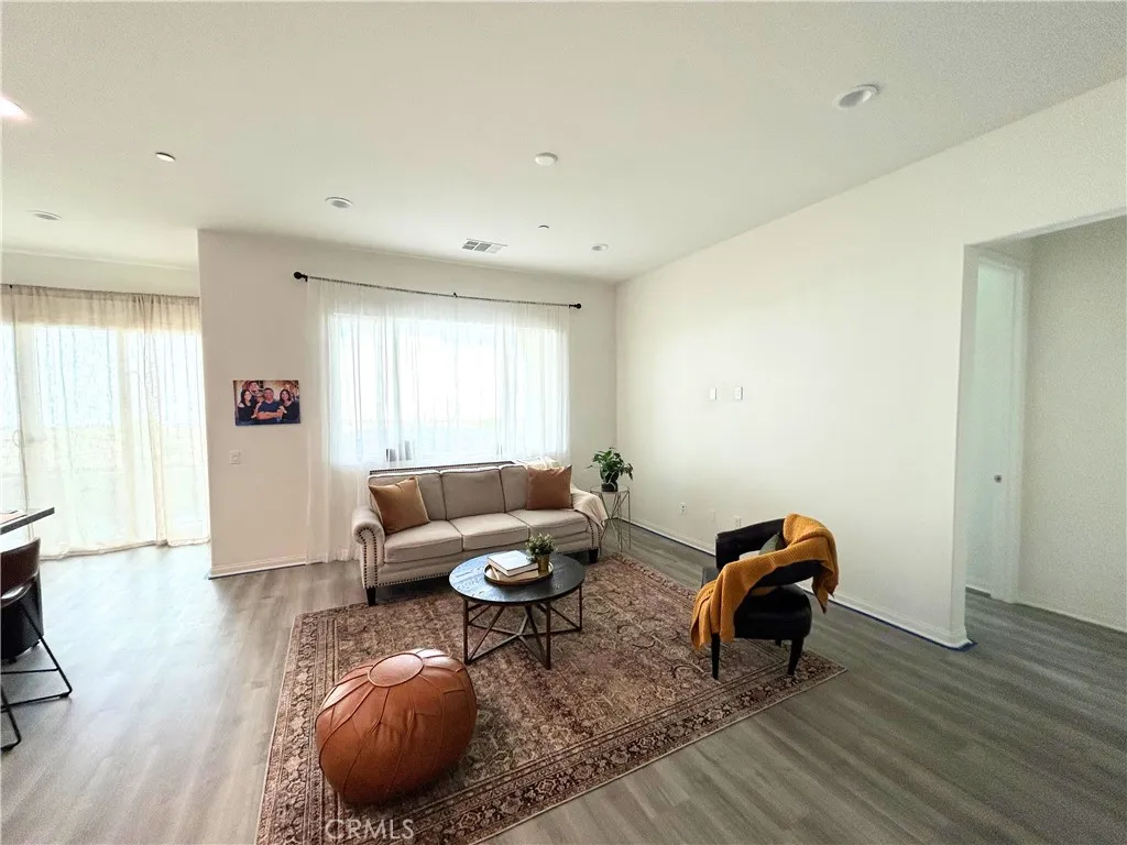 Beautifully upgraded single-story home featuring 4 bedrooms, 3 bathrooms, and a private office, offering exceptional flexibility of use. Built in 2020 with first occupancy in 2021, this thoughtfully designed home showcases an open-concept layout with 10-foot ceilings, recessed lighting, and luxury vinyl plank flooring throughout. Bedrooms, great room, and patio are pre-wired for ceiling fans. The spacious kitchen features granite countertops, soft-close cabinetry and drawers, premium appliances, dual GE ovens with SmartHQ app control, a large island with breakfast seating, and abundant storage. Bathrooms offer matching stone counters, soft-close cabinetry, and floor-to-ceiling tile in shower and tub surrounds for a clean, modern finish. Ethernet wiring throughout provides fast, reliable wired internetideal for remote work, streaming, and smart-home needs. Additional highlights include a generous laundry room with utility sink, tankless water heater, leased solar system, whole-house water filtration with reverse osmosis, and smart-home features for garage and exterior lighting. The finished garage features upgraded epoxy flooring and a 220-volt outlet. Enjoy a low-maintenance backyard with concrete patio and vinyl fencing. Located in the desirable Harvest community across from a park with mountain views and resort-style amenities including pool, spa, fitness center, clubhouse, parks, sports fields, community garden, and dog park. Convenient to schools, shopping, and dining, with approximately a 20-minute drive to the beach. Unassuming from the front, this home opens to a lig