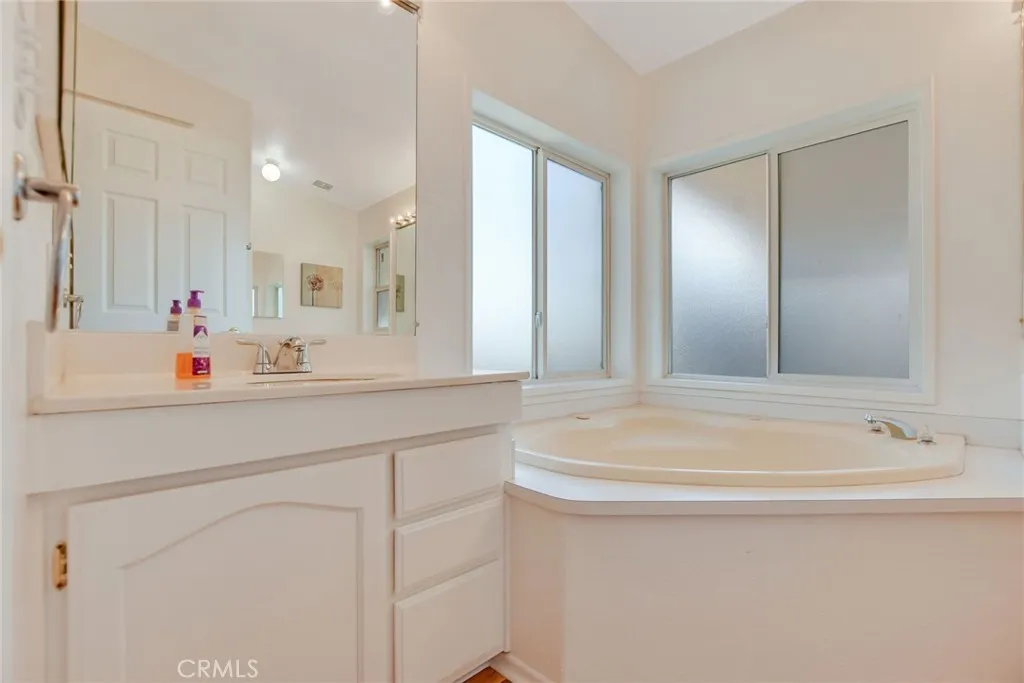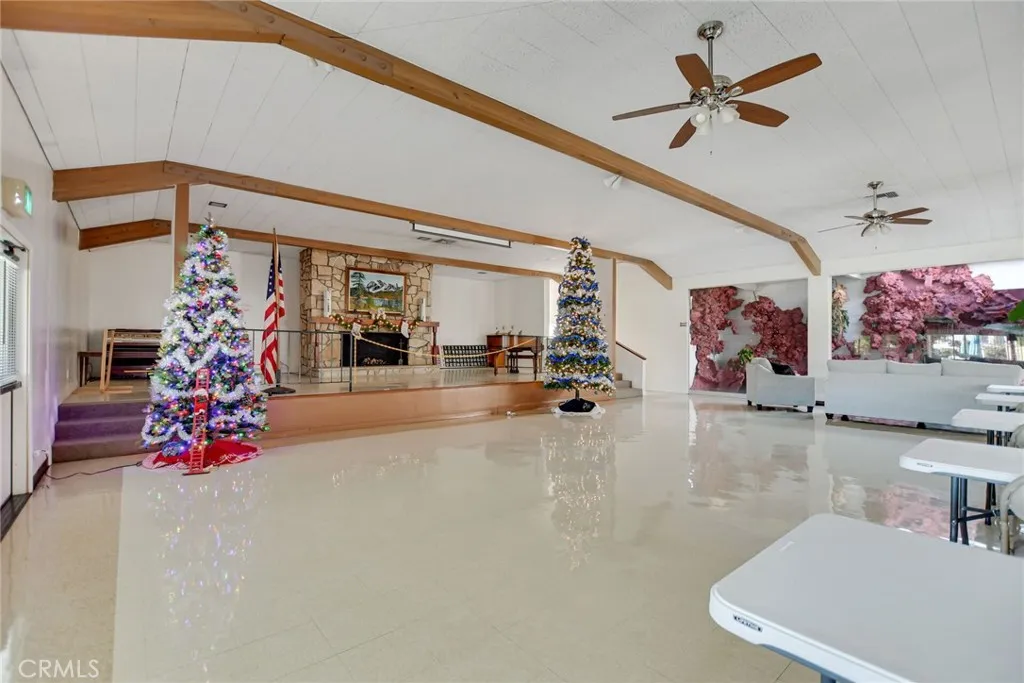Well-maintained 2 bedroom, 2 bathroom home with a separate den/office located in The Fountains, a 55/45+ community in La Verne. This home offers an open layout with high ceilings that create a spacious feel throughout. The secondary bedroom includes a permitted expansion of approximately 160 sq. ft. (approx. 10' x 16'), providing additional living space compared to many homes in the community. Interior features include laminate flooring throughout with waterproof flooring in the restrooms, a large kitchen with bay window and eating area, and an included French-door refrigerator. Additional features include a separate laundry room with sink, dual-pane windows, newer toilets, and a 100 AMP electrical panel. Roof replaced approximately July 2023 and partial driveway replacement was completed recently. From areas of the home, there are views of the San Gabriel Mountains. An Italian lemon tree is located on the property. The extra-wide street in front provides convenient access and parking. Community amenities include a clubhouse, banquet room, kitchen facilities, swimming pool, spa, shuffleboard area, gym, and dog park. Furniture and personal property are included with the sale, excluding items specified by the seller. Buyer must be approved by Park Management.