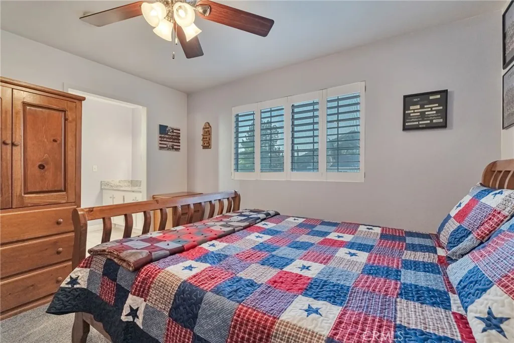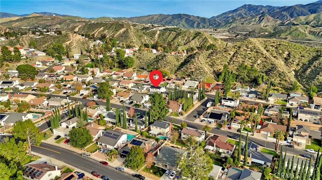 29015 Gladiolus Drive is the coveted Delta model, the most sought-after floor plan in the highly-desirable Pinetree Community of Canyon Country. Located on a quiet, low-traffic street, this 2-story home offers incredible mountain views, standout curb appeal, a sparkling pool, and a thoughtfully designed layout with modern comfort and efficiency in mind. The home features 4 bedrooms and 3 full bathrooms, including a convenient main-floor bedroom and full bath. The oversized primary suite serves as a private retreat, complete with an en-suite bathroom, walk-in shower, and abundant storage. Upstairs Jack-and-Jill bedrooms share a full bathroom with extensive cabinetry and organization space. The interior showcases granite countertops throughout the kitchen and bathrooms, porcelain tile flooring on both levels, ceiling fans in every room, plantation shutters, custom barn doors, and a large pantry with two additional secondary pantries for maximum storage. A premium Bosch dishwasher completes the upgraded kitchen space. Major system improvements include a full home re-pipe, newer HVAC system (AC, furnace, and ducting), whole-house fan, upgraded electrical panel with generator plug-in, a newer breaker box, dual-pane windows, and solar power with approximately 6 years remaining on the current agreement. The backyard is a true oasis, featuring a sparkling heated pool, multiple patio covers, artificial turf for low maintenance living, dual RV access on both sides, and a dedicated gas connection for your BBQ, making outdoor entertaining seamless and convenient. Additional highlights
