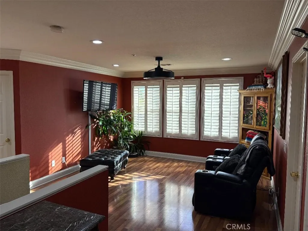 Welcome to your dream home featuring a sparkling pool in the highly desirable North Fontana community of Morningside. This beautiful well maintained two-story residence offers 5 bedrooms and 3 bathrooms, spanning 2,830 square feet of thoughtfully designed living space. The home is nestled in the tranquil, non-HOA neighborhood, perfect for growing families and multi-generational living. Upon entry, you are greeted by an inviting spacious living room, were youll find soaring ceilings, recessed lighting, crown moldings, laminate wood and tile floors throughout, several windows that flood the space with abundant natural light, creating an airy and open atmosphere. The adjacent formal dining area is ideal for hosting family gatherings and special occasions. The open-concept kitchen is well appointed with ample cabinetry, walk-in-pantry, granite countertops, stainless steel appliances and a center island with sink-perfect for everyday family meals and entertaining. The cozy family room features a charming gas fireplace and large sliding doors that frame picturesque views of the backyard. A downstairs bedroom and full bathroom provide convenience and comfort for guest or extended family. Upstairs, the expansive 16' x 24' primary suite is a true retreat, complete with a large 10' x 11' walk-in closet and fully remodeled spa-like bathroom featuring heated floors, dual sinks. walk-in shower with dual rain showerheads and a separate soaking tub. Four additional generously sized bedrooms share a remodeled hallway bathroom with dual sinks and dual showerheads. A second upstairs family r