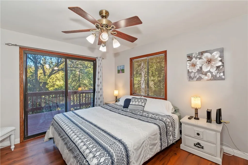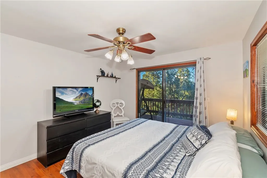 Wonderful Mountain home close to Lake Gregory for all sorts of summer fun and glorious walks on the trail. Enjoy fishing, kayaking, paddle-boarding and the water park & beach, too. This lovely home starts off with hugely important "Level-entry" AND "Level-parking" AND bedroom& bath on the main floor! Great room design for everyone's favorite "open floor" plan. Living area opens to outdoor living space with forested views in every direction. Updated Master bedroom with fireplace a newer spa-bath is terriffic and wait till you check out the lower level, now set up as a billards room (could be a theatre room, could be 2 more bedrooms or ??. This level opens to expanded deck for more outdoor space and those mountain views. This property is being offered "turn key", all furnished & decorated... just move right in! AND seller is including plans for an additional living space for a 600sq' ADU. This is such a nice package & simply can't be beat and only $235/sq'!