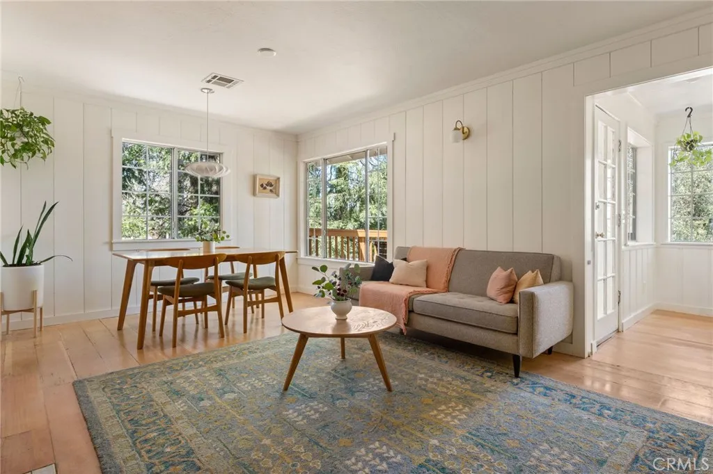 This home has been thoughtfully updated with an inviting Scandinavian aesthetic and organic mountain touches. Located at the end of a cul-de-sac, this property offers a quiet, tranquil respite from the hustle and bustle of daily life. Beautiful masonry along an easily accessible driveway offers ample parking for family and guests. Enter on the upper level to find a light & bright, fully updated kitchen with custom cabinetry and butcher block countertops that opens to the dining area and living room, with large windows that let in the light. A beautiful Hearthstone wood burning stove serves as a focal point in the living room. Down the hallway are two bedrooms, one of which is the primary suite with en-suite bathroom. Across the hallway is the 2nd bathroom. Also on this level is a built-in desk area, stackable laundry closet and access to the newly constructed front deck. Downstairs is the 3rd bedroom and direct entry into the 1 car garage. The backyard features a spacious back deck and large gradual hillside with endless potential. The property has undergone a full renovation in recent years - upgrades include: new electrical, new wall insulation using rockwool, custom tongue and groove wood paneling, interior walls have been soundproofed with rockwool, all new kitchen & bathrooms, new water heater, new front & back redwood decks and more! This charming cabin will steal your heart!