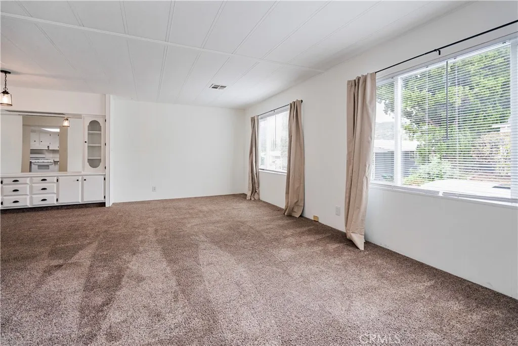NEW PRICE! Welcome to 6480 Katherine Road #62. This beautiful, spacious, two-bedroom/two-bath home is turnkey and move-in ready. The centrally located kitchen features a gas range, dishwasher and corner sink with laminate flooring, white cabinetry, and tile countertops. Plush carpeting runs throughout the living room which provides gorgeous views of the Santa Susana Mountains and opens to the formal dining room with a built-in China cabinet. A breakfast bar connects the kitchen and family room which leads to a screened in porch that is great for both morning coffee and evening dinners. Each bedroom provides a walk-in closet and an en-suite bathroom. The primary-suite bathroom has a hand-held shower wand and large soaking tub along with double sinks. The secondary bathroom offers a large, newer, marble shower enclosure and is accessible from the laundry area, so it can be used as a guest bathroom. Storage is abundant with two sheds at the end of the carport, and this home also has a patio with pavers for outdoor dining. Many of the windows in this home have been upgraded to dual-paned vinyl windows. This highly desirable, family park offers a pool, spa, recreation room, and park-like setting. Come and see all that this home and community have to offer!