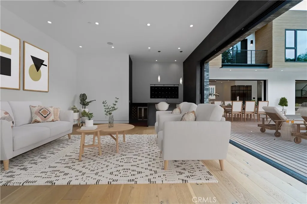 Welcome to your private sanctuary, nestled on a sprawling .68 acre wooded lot. Situated on a flag lot, this estate sits far from the street, ensuring unmatched privacy. A gated entrance and extended driveway lead to a spacious three car garage, with ample additional parking for guests. Step through the breathtaking glass entryway, where soaring 32-foot ceilings, a dramatic chandelier, and striking white oak floating stairs set the stage for this architectural masterpiece. Walls of glass and Fleetwood sliding doors seamlessly blend indoor and outdoor living, flooding the space with natural light and creating an entertainers dream. The open concept layout is anchored by stunning oak floors and a sophisticated Italian designed kitchen, featuring a hidden oversized pantry and a wine fridge, perfectly positioned beside an elegant formal dining area. The lower level boasts two ensuite bedrooms, a private office, and a state-of-the-art theater, ensuring ultimate comfort and convenience. Upstairs, the primary suite is a true retreat, complete with a cozy fireplace, a custom walk-in closet, and a spa inspired bath. A private sitting area and relaxation patio offer a peaceful escape. Above the garage, a versatile space awaits, ideal for a gym, studio, or guest quarters, opening onto a spacious outdoor terrace. Step outside into an entertainers paradise, featuring a zero edge saltwater pool and spa, a sleek cabana, a fully equipped pool house, and a basketball court. Multiple outdoor patios provide the perfect setting for dining and relaxation, while paid-for solar panels add a modern