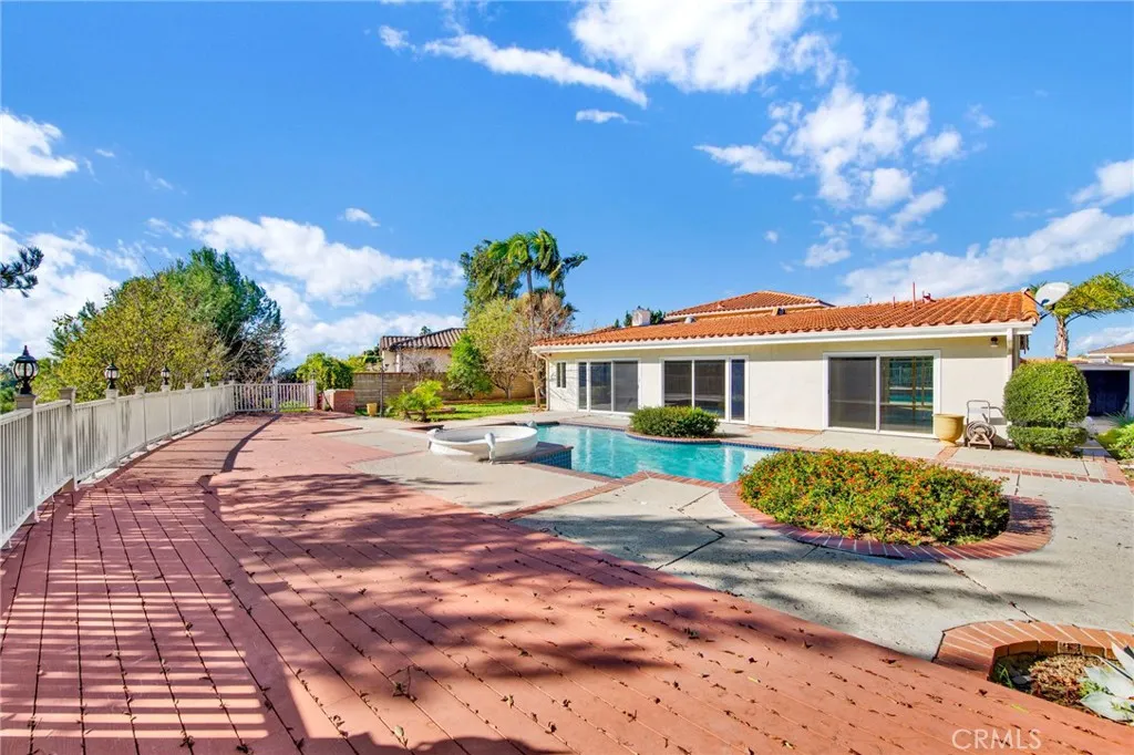 Welcome to 1641 Copa Way, a spacious hillside residence tucked away on a quiet cul-de-sac in Monterey Park, offering sweeping panoramic views of the San Gabriel Valley, Downtown Los Angeles, and the surrounding hillside scenery. Set on an expansive 11,166 sq. ft. lot, the property combines elevation, privacy, and a versatile layout well suited for everyday living and entertaining. The home features 4 bedrooms and 4 bathrooms across approximately 2,654 sq. ft., highlighted by an expansive open-concept great room filled with natural light. Warm wood flooring and an interior fireplace anchor the main gathering space, while large sliding doors allow the great room to flow seamlessly outdoors, creating an ideal indooroutdoor living experience. The private backyard offers a sparkling pool, expansive deck, and fruit trees, providing generous space for outdoor gatherings, dining, or relaxed weekends enjoying the elevated hillside setting. A well-appointed kitchen with a center island provides ample storage and counter space and connects naturally to the main living areas. The thoughtfully designed floor plan includes two primary suites on the main level, offering flexible single-level living options, extended guest accommodations, or adaptable space to suit a variety of lifestyle needs. Upstairs, two additional bedrooms, a bathroom, and an upstairs family room provide additional living space suitable for work, recreation, or everyday use. The home is conveniently located near the Monterey Park Golf Course, local parks, dining, and everyday amenities, with easy access to the 10, 60,