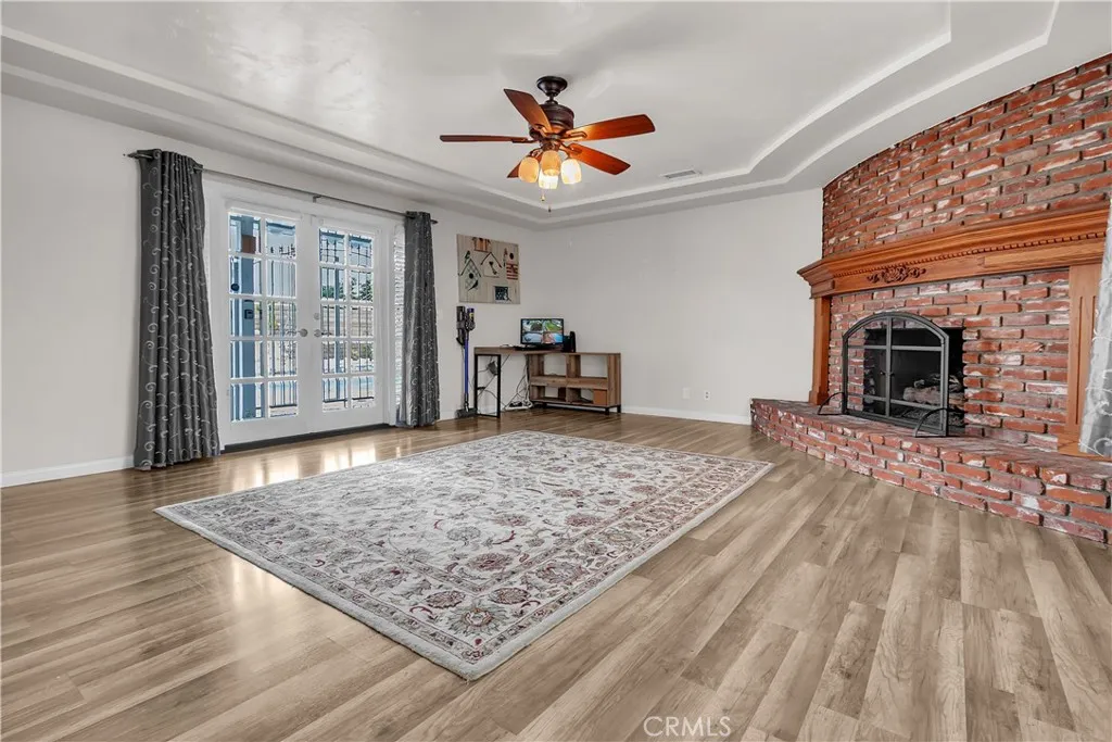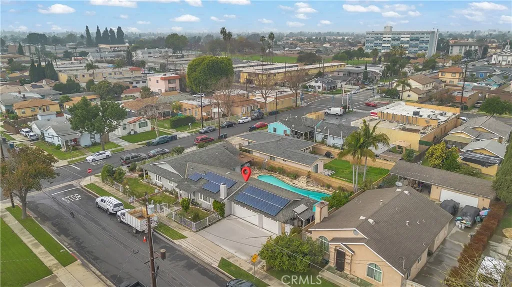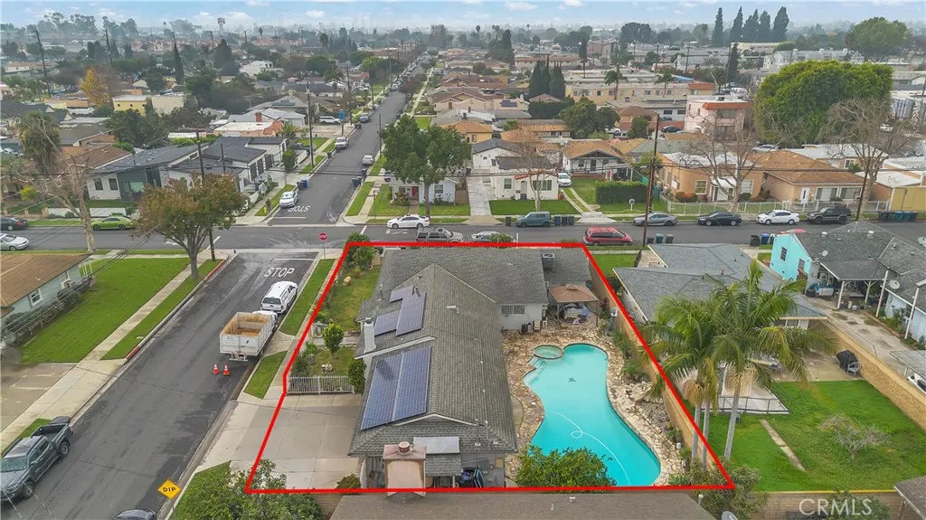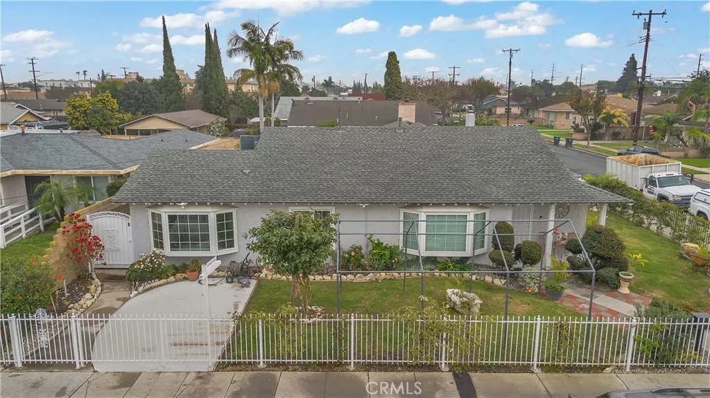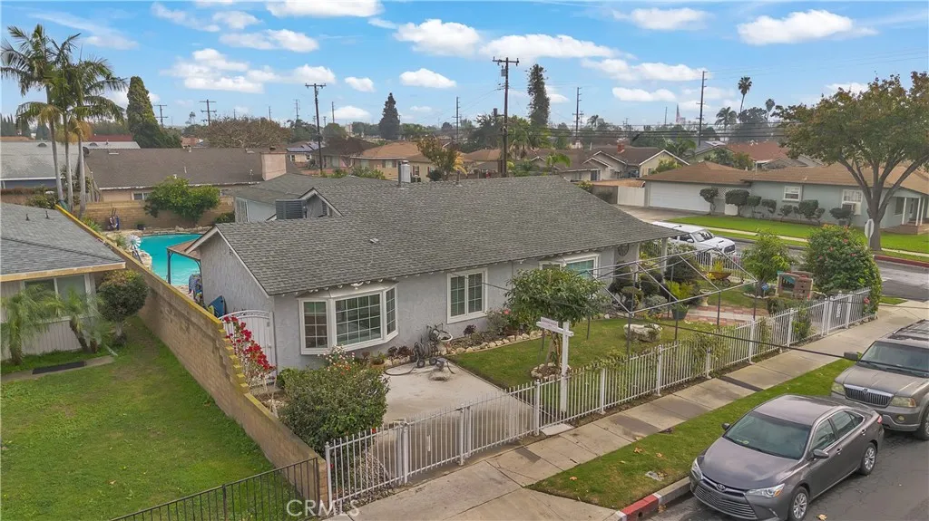 Welcome to a beautifully upgraded Bellflower home offering over 2,200 sq ft of comfortable living and exceptional indoor-outdoor flow. Sitting on a desirable corner lot, this residence greets you with a bright and spacious Living Room enhanced by decorative ceiling accents that add a touch of elegance. The open layout leads seamlessly into the Dining Room and the fully remodeled Kitchen, complete with a smooth-top electric stove, built-in microwave and oven, designer cabinetry, upgraded counters and backsplash, and abundant storage. Just off the Kitchen, youll find a convenient Laundry Room, a Bathroom, and a secure side entry with a gated access point and video doorbell. A large Family Room anchors the heart of the home, featuring a charming brick fireplace with wood mantle and French doors with operable sidelights that open to the patio and pool areaperfect for gatherings or quiet evenings at home. The opposite wing of the home offers four generously sized Bedrooms and a full Bathroom with an oversized vanity. A secondary door near the Bathroom provides additional access to the backyard and pool area. Step outside to your private retreat, where lush roses, flowers, and mini gardens fill the fenced front yard and enclosed backyard. The backyard showcases stone hardscape with proper drainage, an in-ground spa, and a tranquil waterfall feature that creates a resort-like atmosphere. A spacious covered patio with recessed lighting and a security gate adds an extra layer of pool safety. From here, you can also access the attached 3-car garageideal for parking, storage, or tran