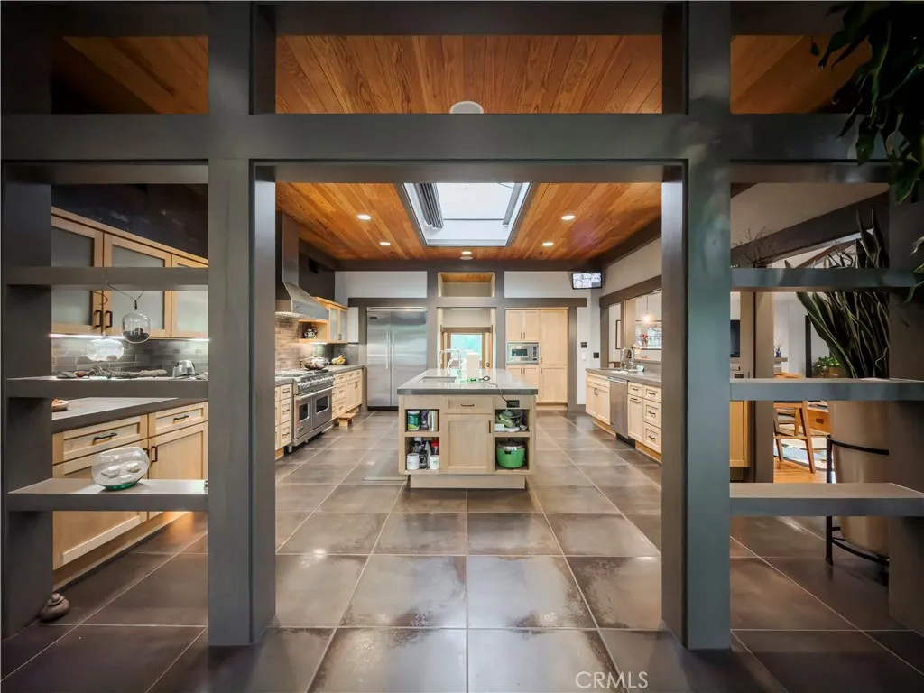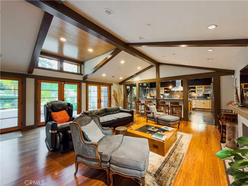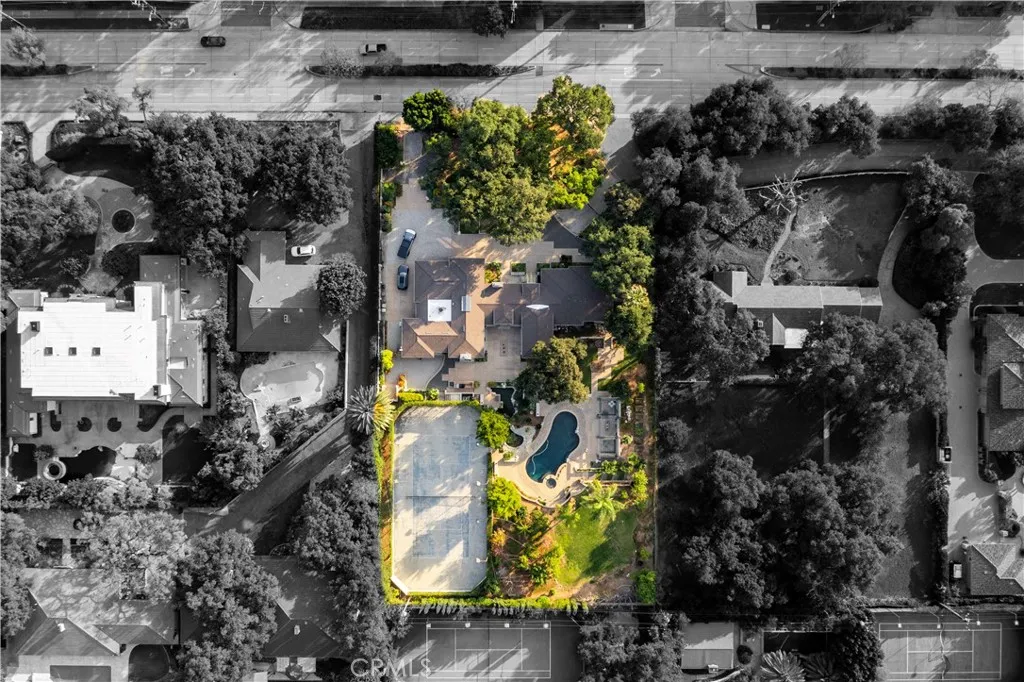 Welcome to a rare Japanese-inspired estate located in the prestigious Santa Anita Oaks enclave of Upper Rancho, Arcadia. Privately set behind majestic mature oaks, this exceptional single-level residence was extensively remodeled and expanded in 2012, blending timeless design with modern luxury. Upon entry, the home reveals a thoughtfully curated open floor plan filled with natural light and tranquil garden views. The private bedroom wing features an elegant primary suite with soaring vaulted ceilings and direct patio access, complemented by three additional ensuite bedrooms and a dedicated office that easily converts to a fifth bedroom. The heart of the home is the expansive living and dining areas, seamlessly flowing into a striking contemporary kitchen designed for both entertaining and everyday living. Walls of glass open to the backyard, creating effortless indoor-outdoor connectivity and a true Zen-inspired retreat. A generous family roomfully equipped as a private movie theateradds versatility and comfort, while the rear service corridor provides access to the laundry room and three-car garage. The resort-style grounds are extraordinary. The expansive backyard showcases a full tennis court, swimming pool, spa, multi-level koi pond with waterfall, covered lounge pavilion, outdoor kitchen, and a lush exotic fruit orchard featuring dragon fruit, persimmon, pomegranate, loquat, guava, peach, banana, jujube, avocado, and citrus. This serene estate offers privacy, sophistication, and an unparalleled lifestyle in one of Arcadias most coveted neighborhoods.