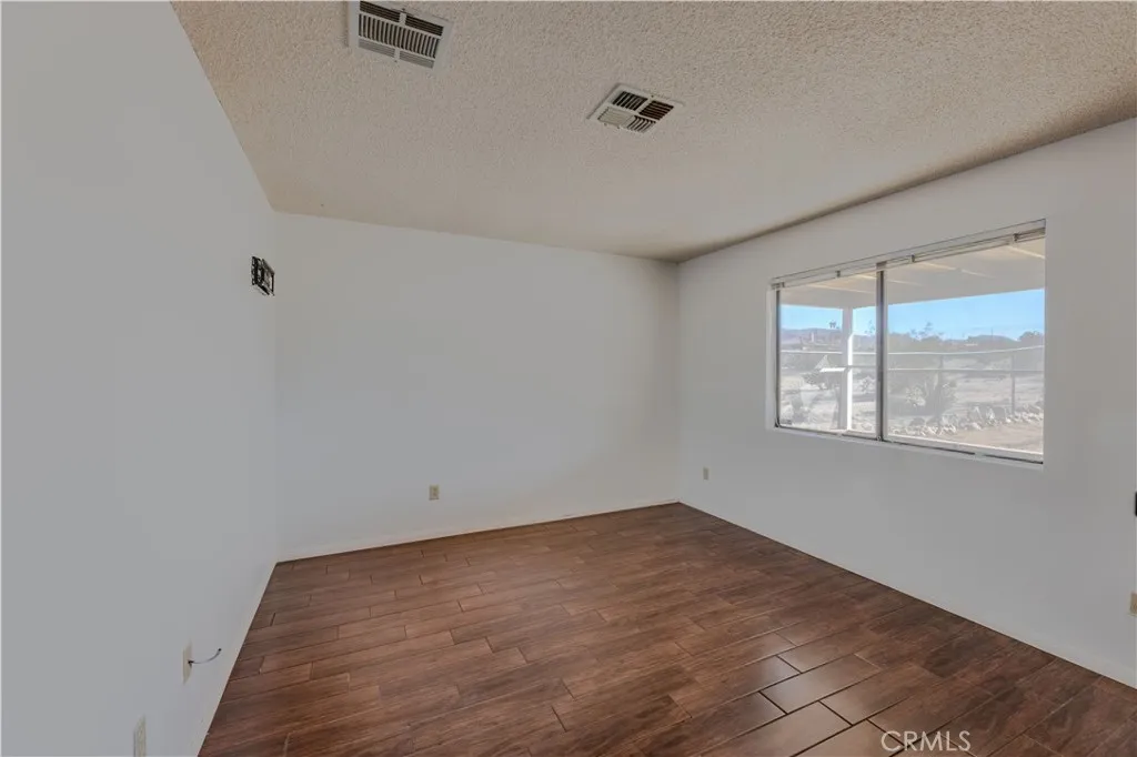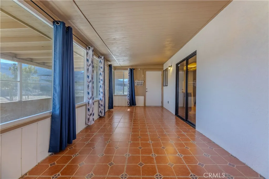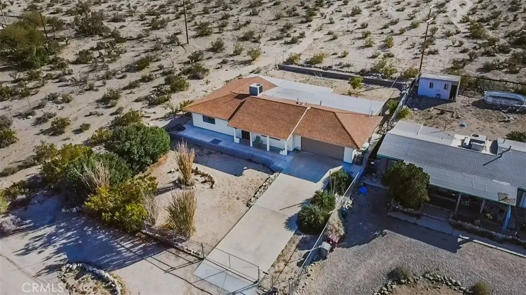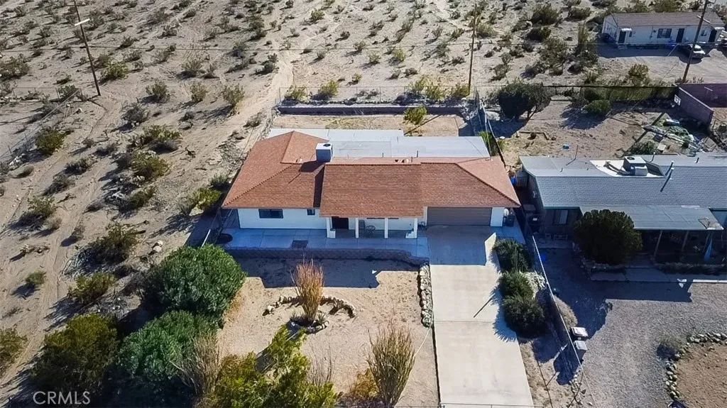 This house is turn key ready and in a premium location with an 11,250 square foot lot. Just 3 miles from the entrance of Joshua Tree National Park. This home sits high up with commanding views of the valley below. Interior is tiled making for easy maintenance and pet friendly. 3 bedrooms, 2 bathrooms, and an enclosed sun room with it's own A.C. and it's not included in the square footage. Back yard features a large covered patio with views of the mountains, fenced in yard, and a second screened in patio perfect for pets. Central air conditioning and heating, dual pane windows, and window coverings. Attached 2 car garage with laundry hook ups. Front yard is fully fenced with lots of cement and a covered front porch too. Home is perfect for first time buyer, vacation home, or Air B & B , or full time rental.