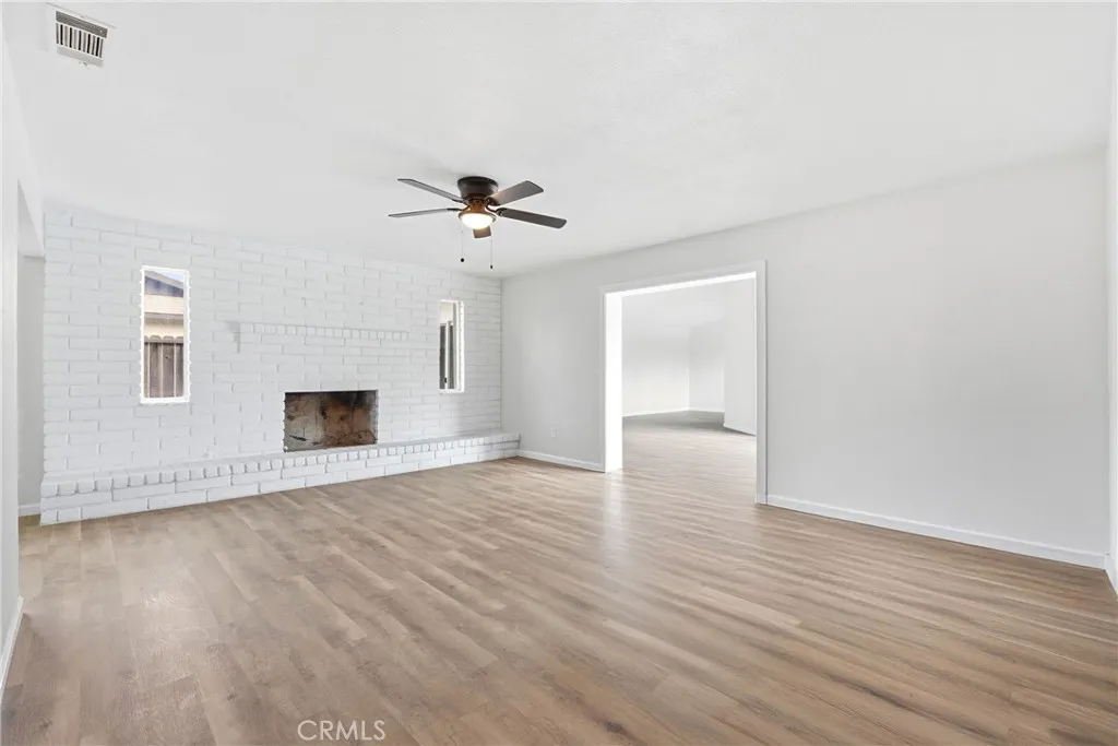 Corner lot home featuring an in-ground pool and spa combo! This well-maintained residence offers three bedrooms and two full bathrooms, plus a spacious enclosed sunroom with views overlooking the pool. Wood flooring flows throughout the home, complemented by ceiling fans in the living room and all bedrooms. The kitchen features granite countertops with a tile backsplash, while both bathrooms include granite vanity countertops. The hall bathroom offers a shower-over-tub, and the primary bathroom features a separate shower stall. The backyard is designed for easy maintenance, allowing you more time to enjoy the outdoor living space and pool.
