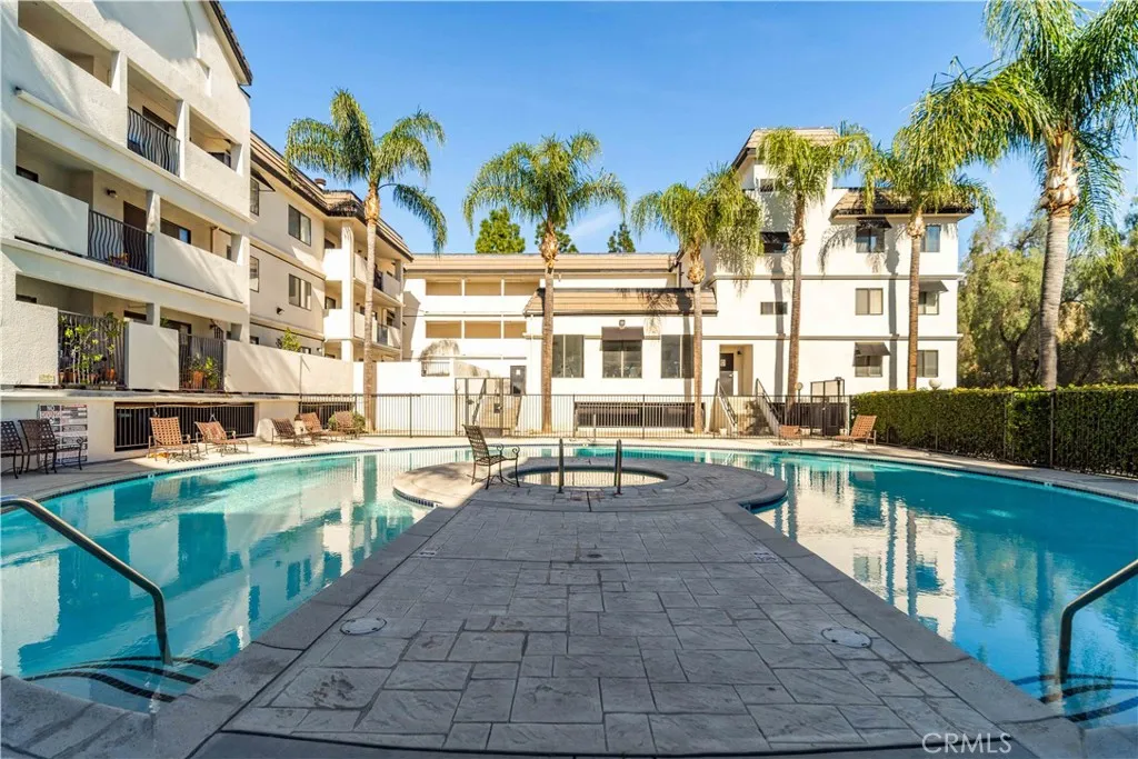 Welcome to UNIT 112 this spacious and beautifully updated single-level 2-bedroom, 2-bath condo offering comfort, privacy, and resort-style living in a gated community. A formal entry opens to a light-filled living room featuring wood flooring, upgraded light fixtures, fire sprinklers, and blackout shades throughout. A large private balcony stretches the full length of the unit, creating seamless indoor-outdoor living. The kitchen is well-appointed with granite countertops, upgraded cabinetry, stainless steel appliances, a refrigerator included, recessed can lighting, a ceiling fan, and tile flooring. Adjacent indoor laundry includes a washer and dryer, plus a smart thermostat for added efficiency. Both bedrooms are generously sized and thoughtfully positioned on opposite sides of the unit for maximum privacy. Bedroom one features wood flooring, a walk-in closet, a linen closet, and an en-suite bath with a large tiled walk-in shower and Corian countertops. The primary suite offers wood flooring, two closets, including a walk-in, and a spacious bath with dual sinks, Corian counters, and a large soaking tub. Recent upgrades include fresh interior paint, a new heat pump, a new refrigerator and garbage disposal, updated bathroom vanities, sinks, and faucets, quartz upgrades, and enhanced lighting throughout. Community amenities include a pool, spa, sun deck, fitness center with pool views, sauna, gated entry, secured building access, two side-by-side underground parking spaces, and a large private storage room. FHA & VA approved. HOA dues are $645/month and include insurance and