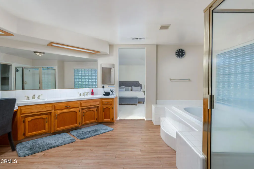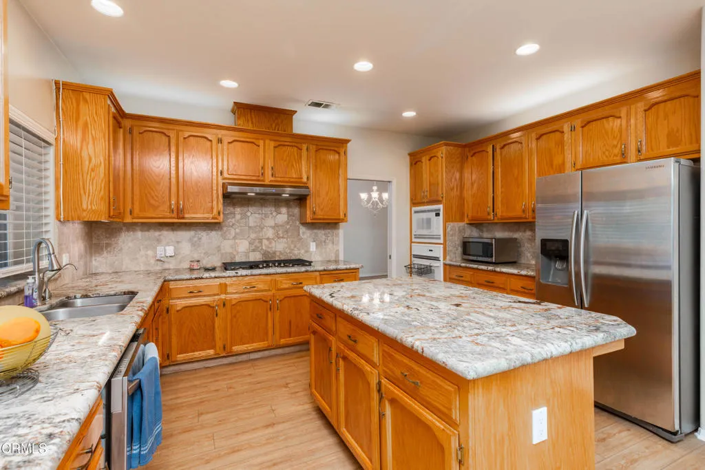 Spacious home in Seven Oaks near the coveted Ronald Reagan Elementary School! This 4 bed, 4 bath home also features an office downstairs with a nearby full bathroom if an additional bedroom is needed. Brand new LVP flooring and additional upgrades including newer HVAC system, water heater and pool pump. The formal living & dining area has soaring ceilings, a grand fireplace & huge windows to let in natural light. There is also a fireplace in the family room with views of the pool. The gourmet kitchen features granite counters, stainless-steel appliances & an island w/ breakfast bar. You will love the huge master suite w/ yet another fireplace, a jetted tub & custom cabinets in the walk-in closet! One of the other bedrooms is a junior suite with its own bathroom. The backyard features a sparkling pool, a lush grass area, a covered patio & mature landscaping w/ several fruit trees. This home is perfect for those who value space and a very functional floor plan plus a 3 car garage!