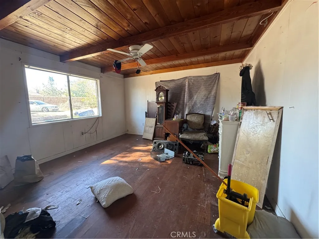 Fixer in Phelan. This home is in significant disrepair and will require a cash offer to purchase it since it will not meet financing guidelines in its current condition. It was previously a charming 1,152 square foot home that offers 2 bedrooms and 1 bath. It sits on a spacious lot that includes two separate parcels of land in the sale. There is one large bedroom with its own sliding glass door entrance. The second bedroom is also large and has wood beam ceilings. It has a large open kitchen space that opens to the living room. The property also includes several additional outbuildings. This will make a very nice project once finished because it is close to pavement and downtown, is completely fenced, and zoned for horses.
