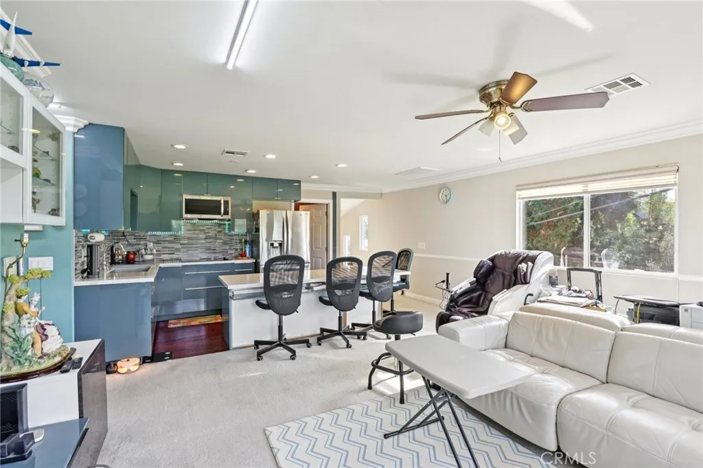Welcome to 329 Kathryn Drive in Anaheim, a rare and versatile property designed for extended families, savvy investors, or anyone seeking flexible living under one roof. Ideally positioned just behind the 8th hole of Dad Miller Golf Course, this expansive residence offers space, privacy, and long-term potential. With approximately 6 bedrooms and 4 bathrooms, the home is thoughtfully arranged into three distinct living quarters: Front Wing: 2 bedrooms, 1 bathroom, full kitchen, and living area, ideal for in-laws, guests, or rental income. Rear Wing: Another 2-bedroom layout with kitchen and living space, plus access to a shared full bathroom in the common area. Upper Level: 2 bedrooms, 1 bathroom, wet bar, and elevated golf course views, a perfect private retreat, office suite, or additional income space. Significant additions completed in 2010 transformed this property into a TRUE MULTI-FUNCTIONAL residence. Whether youre housing multiple generations, offsetting your mortgage with rental income, or creating separate work-from-home quarters. The backyard invites possibility. A spacious gazebo awaits your personal touch in addition to a flex patio space, with a separate entrance, for large family gatherings. The generous lot offers ample parking for up to 17 vehicles and RV ready, with a two-car garage providing additional storage and convenience. Modern upgrades include paid-off solar, EV charger, tankless water heaters serving the home and a central HVAC for year-round comfort. Surrounding the property, youll find mature cactus, mango, and pomegranate trees, a subtle remind