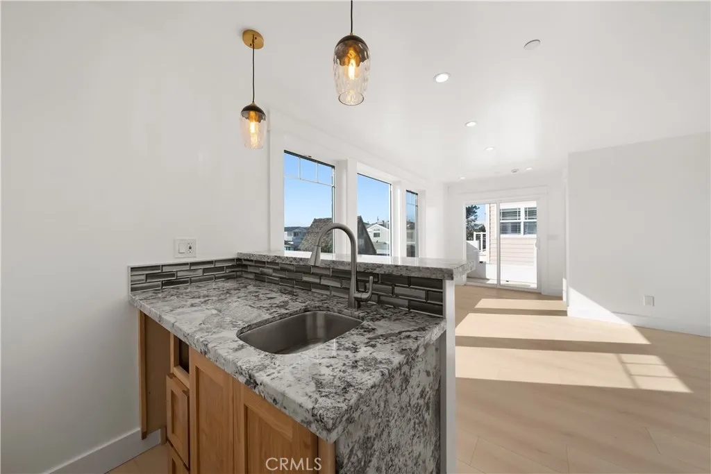 Experience the pinnacle of coastal living in this brand-new custom home, just completed by Beach Front Builders and ideally located in an exclusive neighborhood at the gateway to Pismo State Beach, with beach access just down the street. Set on an oversized 4,300 sq. ft. lot with 43 feet of road frontage, the property offers exceptional functionality, including a stamped concrete driveway, generous parking, and a dedicated side area equipped with an RV waste line. The main living level is designed as a cohesive, open-concept space connecting the living room, dining area, and kitchen. Wide-plank flooring, a coffered ceiling with wood beam accents, recessed lighting, and a modern gas fireplace create a refined yet comfortable atmosphere. Two large sliding doors open to the backyard and stamped concrete patio, allowing for seamless indooroutdoor living. The kitchen is both elegant and functional, featuring double wall ovens, a six-burner gas cooktop with pot filler, quartz countertops, bar seating, custom cabinetry, and an oversized sink with professional-style faucet. A thoughtfully designed butlers pantry provides additional counter space and storage, with room for small appliances and a wine fridge. The lower level includes a private bedroom with en suite bath and a separate guest bathroom, making it ideal for guests or multigenerational living. A large interior space was intentionally constructed to accommodate a future elevator, offering flexibility for long-term use. Upstairs, a spacious family room with a wet bar opens to a balcony and enjoys views overlooking the lagoo