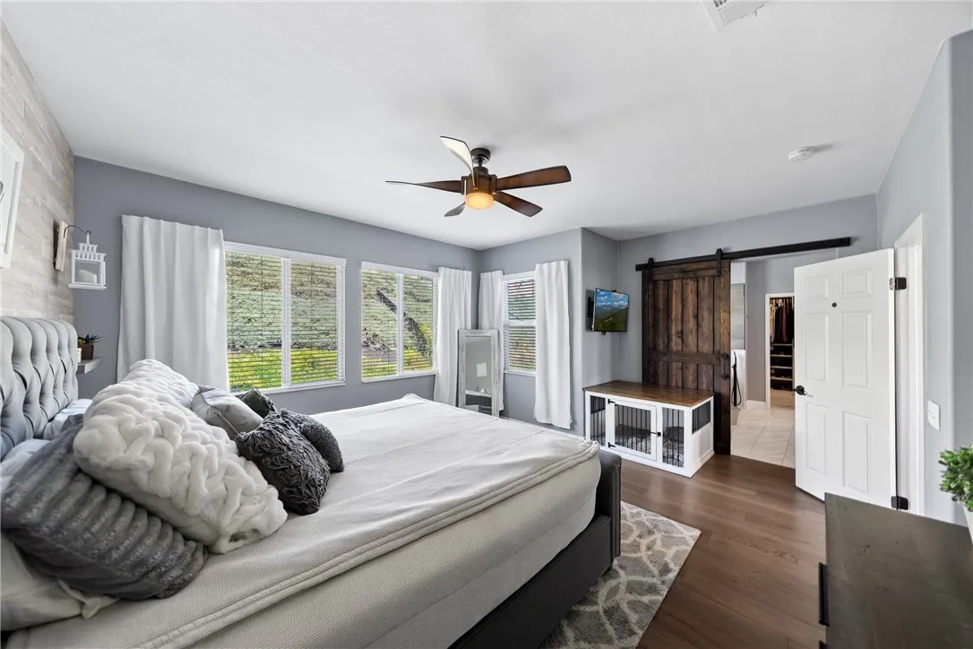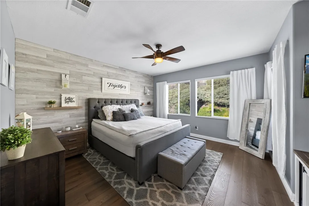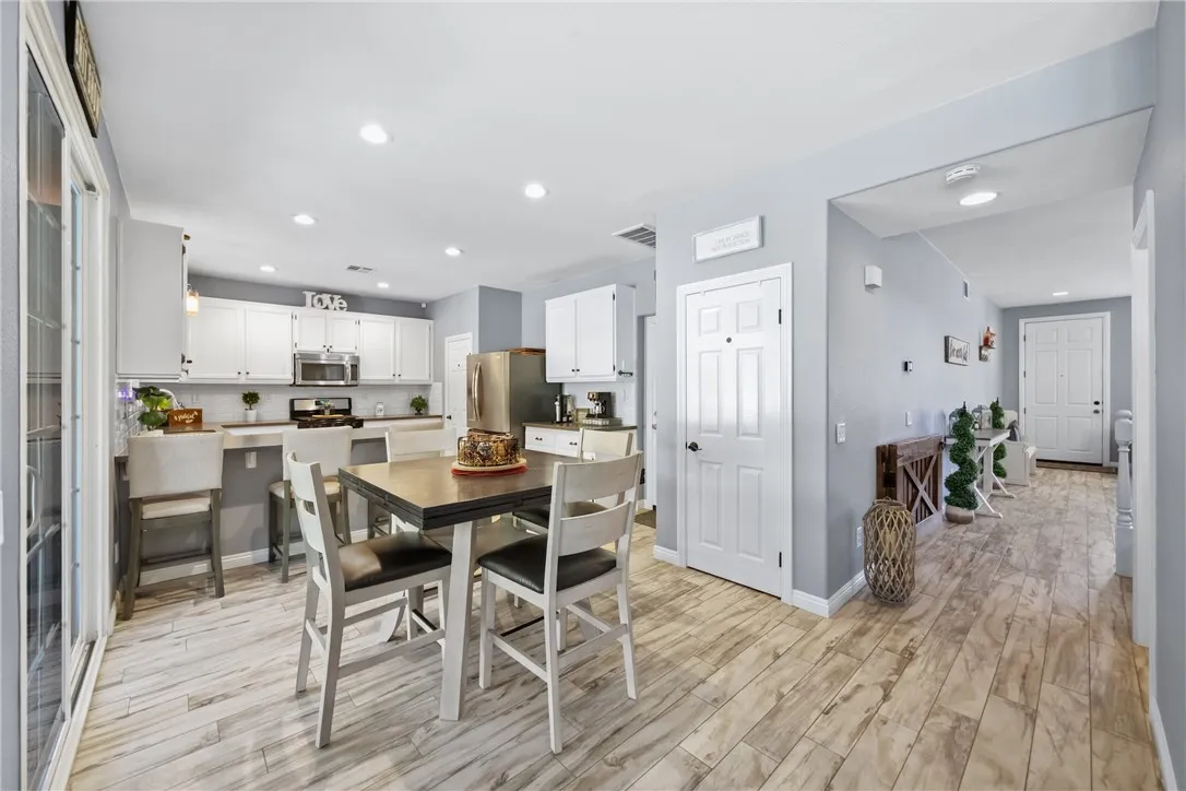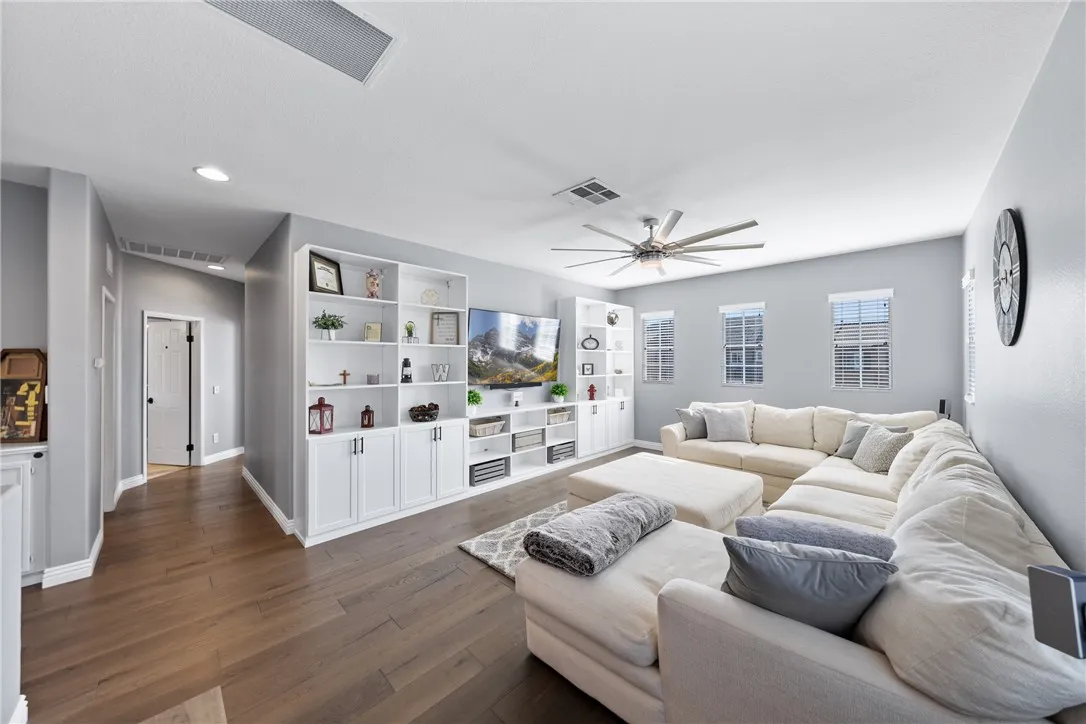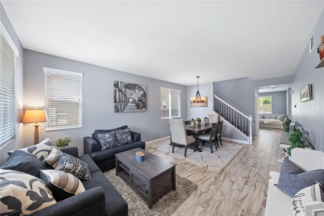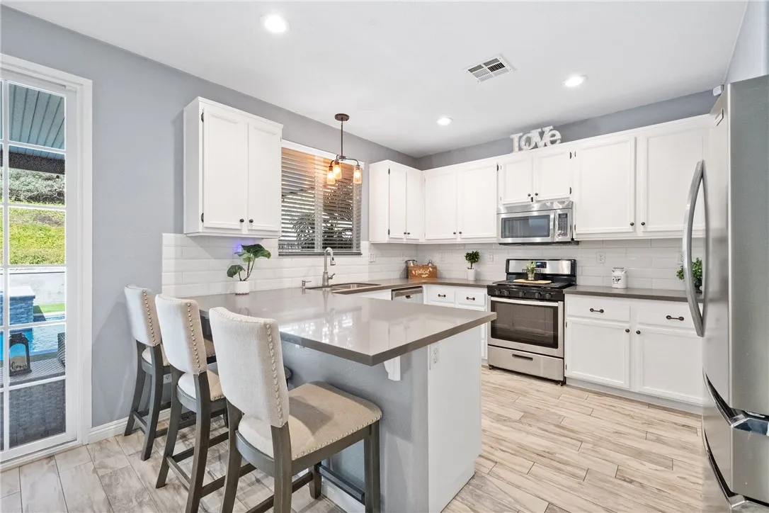 Welcome to this beautiful, turnkey pool home tucked back on a quiet street in one of the most sought after school districts in Temecula which includes Great Oak High School! Nothing needed here, unpack and enjoy your entertainer's paradise backyard that features a newly constructed in-ground heated pool and Jacuzzi completed September 2024. Other futures include covered Alumawood patio cover, lounge areas, easy low maintenance turf, lighting and side yard dog run. Inside the wonderfully laid out home makes great use of it's 2,188 sqft which including 3 bedroom's, 2 1/2 baths and a large loft TV game room that can easily be converted to a 4th bedroom. Stay cool with your AC or ceiling fans in all 3 bedrooms, loft, downstairs living room and a newly installed whole house fan. Upon entry to the home, you will notice stunning low maintenance wood looking tile floors that flow throughout the downstairs. Once inside you will enjoy a spacious open family room and dinning room which includes a downstairs powder bath. It then opens into the cozy living room with gas fireplace at the flip of a switch, then into the breakfast nook and beautifully renovated Kitchen featuring large L-shaped island, quartz countertops, stainless appliances which include gas stove/oven, microwave and dishwasher. Enjoy lots of storage with a walk-in pantry and a 2nd storage pantry. Upstairs, you're welcomed by a large open loft featuring a new built in wall unit with lots of storage and shelf space. This loft was an optional 4th bedroom and could be easily converted. You'll find gorgeous wood luxury vinyl