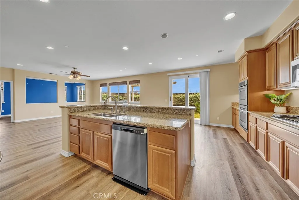 Welcome to this beautifully maintained 4-bedroom, 3-bathroom home located in the highly desirable North Fontana community of Shady Trails. This spacious two-story residence sits on a 10,076 Sqft lot, offering an open and inviting floor plan with abundant natural light throughout. The main level features a generous living area, a modern kitchen with stainless steel appliances, granite countertops, ample cabinetry, and a large center island perfect for meal prep or casual dining. A full bathroom is conveniently located downstairs for guests, while all four bedrooms are thoughtfully situated on the second floor to provide optimal privacy. Upstairs, youll find a spacious primary suite with a walk-in closet and an en-suite bathroom featuring dual sinks, a soaking tub, and a separate shower. Three additional bedrooms, a full hallway bathroom, and a convenient laundry room complete the second floor. Additional highlights include a spacious 3-car garage, providing ample parking and convenience. Situated on an expansive lot, this home offers a large backyard with plenty of open spaceperfect for outdoor entertaining, gardening, recreation, or simply relaxing in a private setting. Residents of the gated Shady Trails community enjoy access to resort-style amenities including a clubhouse, fitness center, pools, spa, sports courts, playgrounds, and walking paths. Conveniently located near shopping centers, parks, top-rated schools, and major freeways, this home offers both comfort and convenience. Dont miss your chance to own this stunning home in one of Fontanas most sought-after neighb