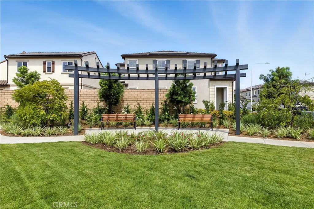 The Elina Model Home - home design offers an alluring mix of elegant design and functional living spaces. Entering through the foyer, you are greeted by an inviting open floor plan that seamlessly connects a two-story great room, casual dining area, and gourmet kitchen that features a central island with breakfast bar, wraparound counter and cabinet space, and a spacious pantry. On the second floor. The luxurious primary suite boasts a coffered ceiling, dual sinks in the primary bathroom, a luxurious shower, and a separate soaking tub. Additional highlights include secondary bedroom suites that feature roomy closets and a shared hall bath, a laundry room conveniently located on the bedroom level, and a gorgeous outdoor living area ideal for enjoying beautiful weather. House is furnished, backyard completed with pool and outdoor fireplace. Solar System included. Move in Ready Condition. Estimate delivery time is Summer 2026