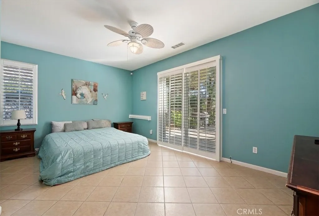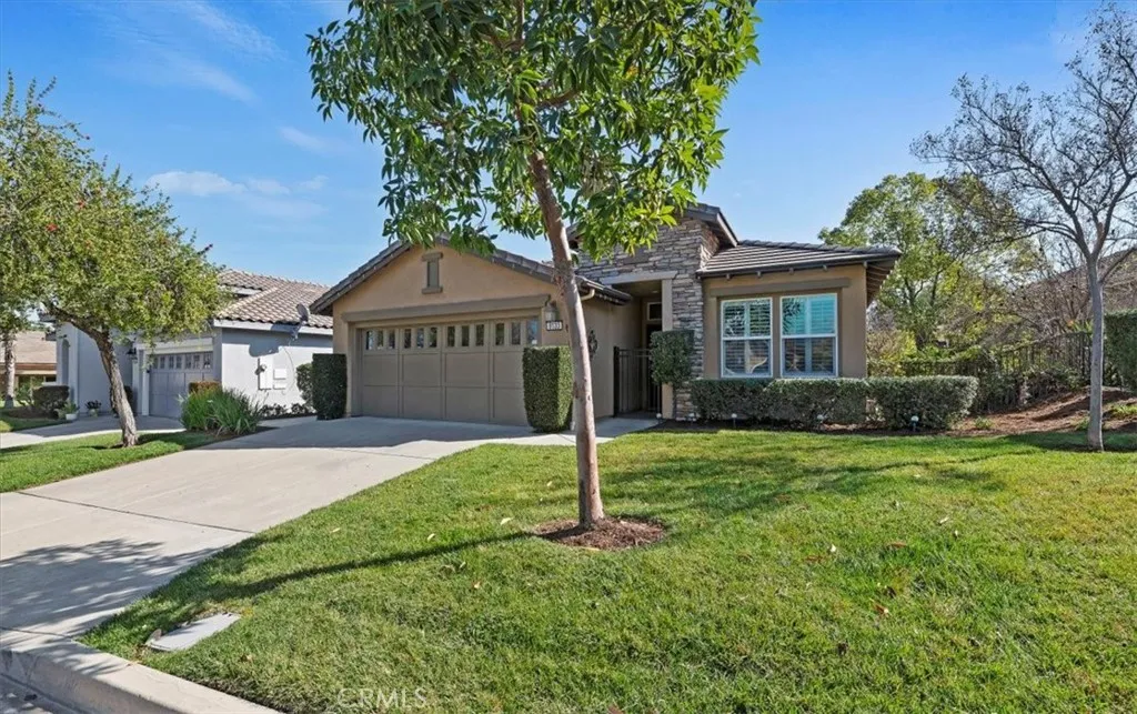 This beautiful home is dramatically set back from the street, and you can enjoy a 'rare' large 6,098' sq ft spacious lot and private rear yard with a free-standing stack stone fireplace surrounded by botanical gardens and trees. Trilogy at Glen Ivy's 55+ gated community is Southern California's little Gem as a sought-after resort like community surrounded by the Ted Robinson designed public golf course. This Sage Model is well appointed, light, bright and airy home. Oversized built in media wall unit in main area. Soaring 10' ceilings, kitchen skylight and kitchen counter seating seamlessly flows into this popular well-designed floorplan. Primary bedroom has sliding glass doors to the rear yard, walk in closet and double sink vanity bathroom. Secondary bedroom is currently being used as an office and bedroom. Wrought iron fencing around the property and newer gated front entry. Front yard maintenance is included in HOA Dues. Enjoy all the many community amenities and 63+ Clubs!