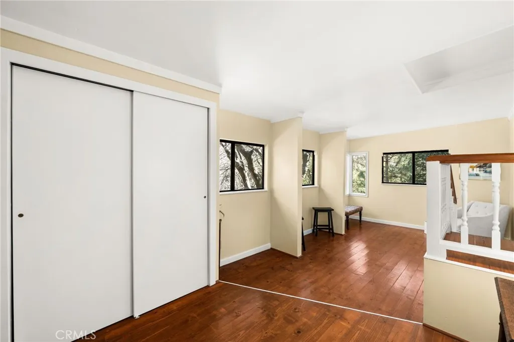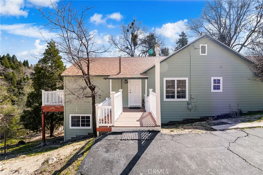 Located in the Smiley Park Country Club, southeast of Running Springs, this turnkey home is tucked away on a quiet cul-de-sac and set on 1.24 acres surrounded by trees and local wildlife. A charming brick walkway leads to the covered front porch and welcoming entry. Knotty pine floors paired with scenic views from nearly every room create a warm, inviting atmosphere and draw you through the homes thoughtfully designed interior. The main level features a living room with a wood-burning fireplace complete with insert and blower, a spacious family room with vaulted knotty pine ceilings, a country kitchen with an open breakfast nook, and a dining room that can easily serve as a den or office. Two bedrooms, one bathroom, and a large walk-in laundry and utility room with washer and dryer hookups complete the main floor. The expansive wraparound composite deck, enhanced with Trex railing at the deck and entrance, is ideal for entertaining or simply relaxing while enjoying birdsong among the surrounding oak trees. The lower level offers a private primary suite with a sitting area, a bathroom featuring an extra-large walk-in shower, and indoor Jacuzzi, along with a second laundry area. An additional bedroom on this level can also function as an office or craft room and offers beautiful views. Youll also find a workshop with a utility sink, abundant storage, and access to a second, smaller deck. Recent upgrades include a newer roof installed in 2021, newer double-hung windows, updated carpeting, laminate flooring in the downstairs bathroom, Hardiboard siding, exterior paint, a new di