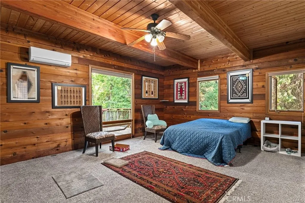 Peaceful private mountain home nestled among trees and wildlife sitting on roughly 14 acres! The home offers two primary suites, one on lower level and one on upper level, with additonal bonus room for 3rd bedroom upstairs. Bedrooms have new carpeting and spacious bathrooms with double sinks, jacuzzi tubs along with walk in showers. The main heart of the home offers, beamed ceilings, lots of windows for views and natural light, an open floor plan, connecting the living, dining, kitchen, and den areas. The den is an inviting space for intimate gatherings or quiet contemplation. The laundry room, equipped with a sink, cabinets, and a convenient half bath, with exterior service door to front deck. The kitchen showcases a newer fridge, double ovens, garbage compactor, microwave, dishwasher, and an appliance garage, complemented by ample pantry space. A gas log fireplace adds warmth to the living room, while ceiling fans throughout ensure optimal airflow. Downstairs, a spacious unfinished basement invites endless possibilities for customization, allowing you to tailor the space to your specific needs and preferences. Step outside to enjoy three decks, each providing a tranquil retreat amidst the natural beauty, with the main front deck just finished and all new with custom lattice work railings. Over the last year the seller has installed full owned solar with two Enphase battery backs ups and a car charging hook up. New roof in 2024 as well prior to Solar, new high end split systems for heat and air, one in main room downstairs and two units in each bedroom. Seller has also com