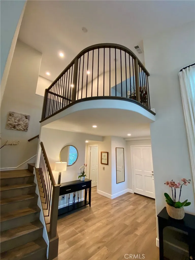 Unbeatable Value: Massive $100k+ Price Improvement! Rare opportunity to own a professionally updated masterpiece at the premier value in prestigious, gated community of Miramonte. Nestled on a corner lot within the desirable Tustin Ranch Golf Course neighborhood, this absolutely stunning 3-bedroom-plus-loft home lovingly cared for by its owners, blends charm, functionality, and showcases tons of luxury upgrades, including the addition of a spacious loft, recessed lighting, newer windows and doors, premium wood flooring on the upper level. Step into the elegant living/family room featuring soaring vaulted ceilings, expansive windows with custom coverings, luxury tile flooring, high-end built-in Thermador wine cooler, welcoming fireplace with granite facing, raised hearth and wood mantel. The remodeled kitchen is a true centerpiece, boasting granite countertops and backsplash, a picture window above the sink offering views of the backyard, moveable granite island, lighted cabinetry with glass doors, a Bosch dishwasher, a Samsung oven, a built-in KitchenAid refrigerator, a stainless steel range hood, a cozy dining area, and a sliding panoramic door leading to a serene, private backyardperfect for outdoor dining, entertaining, morning coffee or just simply relaxation in a fragrant tapestry of roses, azaleas, bougainvillea, and variety of fruit trees: orange, apricot, lemon, mandarin, and plum. Downstairs also features a tastefully updated powder room and direct garage access. Ascend the custom wood and wrought-iron staircase to discover a spacious primary suite with trees view,