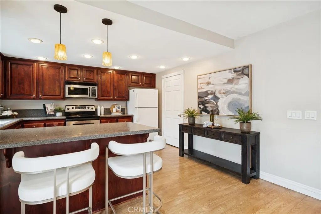 Welcome to your dream home at 10 Prescott, located in the highly desirable Northwood Village of Irvine! Nestled against the scenic foothills, this luxurious Sheffield Manor Residence offers 2 spacious bedrooms and 2.5 baths with nearly 1,400 sqft of beautifully upgraded living space. This home enjoys a quiet neighborhood setting complete with charming street lamps. Step inside to discover upgraded flooring and high ceilings. The chef-inspired kitchen features a functional layout and lots of cabinet storageperfect for preparing gourmet meals. The open-concept living area flows effortlessly from area to area and the skylight in the family room offers bright natural light ideal for enjoying morning coffee. Upstairs, the primary suite includes an ensuite bathroom for convenience and privacy. The secondary bedroom which can function as an upstairs office has access to a dedicated hallway bathroom. Additional highlights include custom designer paint, custom window coverings, and a two-car garage. Enjoy resort-style living with community amenities such as a private pool and open green spaces perfect for recreation and socializing. Located right next to Sierra Vista Middle School, 10 Prescott feeds into the award-winning Irvine Unified School Districtincluding Brywood Elementary, Sierra Vista Middle, and Northwood High School. Live in Luxury!