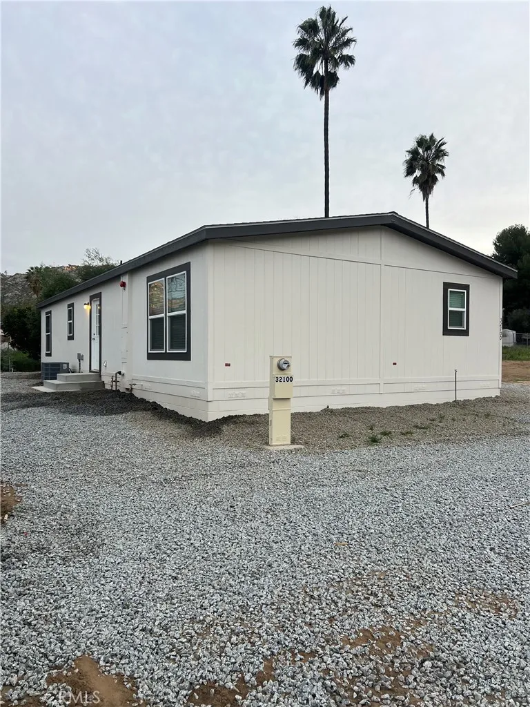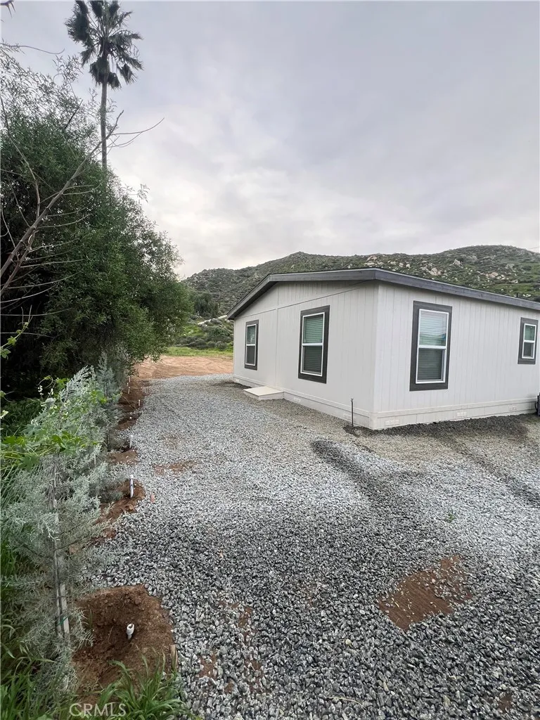 Find yourself ready for adventure with this 3 bedroom 2 bathroom brand new home nestled into the beautiful mountain scenery! Animals, equipment, dirt bikes, bring it all, this huge lot boast the opportunity to have your life at home! No need for RV storage, keep it at home! Household growing, thinking ADU in the future, or maybe you want a work shop, this home was setup with that in mind, flat lot, 200 Amp panel, home sitting at one end of the property leaving the other end ready for you. This new manufactured home sits on a stem wall foundation with a recorded 433A to keep it headache free we connected to SoCal Gas to avoid a pesky propane tank and EMWD water and sewer to avoid septic and well issues. Equipped with a fire sprinkler system and a California Wildfire Package or Wildland Urban Interface package. Move in ready, with appliances like a fridge, washer, dryer, dishwasher and an oven/stove included in the sale. Over 40 trees planted all on a self watering system. This home is the last one on the street giving you great views of the mountains and privacy all while being only minutes from the 215 fwy and Winchester Road. With this home having the Wild Fire Package, insurance has been very affordable! This new build is move in ready!