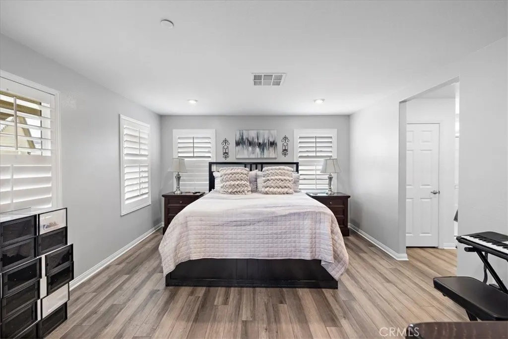 Welcome to Montara at Sycamore Hills where style, comfort, and community come together in this exceptional move-in ready home loaded with upgrades. Situated on one of the largest lots in the community, this beautifully designed 3-bedroom, 2-bathroom residence offers the perfect blend of luxury, functionality, and outdoor living. From the moment you arrive, youll notice the outstanding curb appeal, featuring charming brick accents, classic shutters, and inviting architectural design. The community itself offers a true neighborhood feel, complete with a resort-style pool area and park just moments away. Step inside to discover a spacious open-concept floor plan showcasing premium builder upgrades, including enhanced flooring, an upgraded kitchen, and custom wood shutters throughout the entire home. The bright and airy layout is perfect for both everyday living and entertaining. Upstairs, youll find three generously sized bedrooms, including a beautiful primary suite featuring dual sinks, a large walk-in closet, and a private balcony the perfect place to relax and enjoy stunning California sunsets. The backyard is truly an entertainers dream. Enjoy one of the largest outdoor spaces in the neighborhood, thoughtfully designed with top-quality landscaping, synthetic turf, river rock planters, extensive concrete work, vinyl fencing, and a massive Alumawood patio complete with recessed lighting and ceiling fans. Whether you're hosting guests around the gas fire pit or watching the game on the outdoor TV, this space delivers the ultimate California lifestyle. Ideally located withi