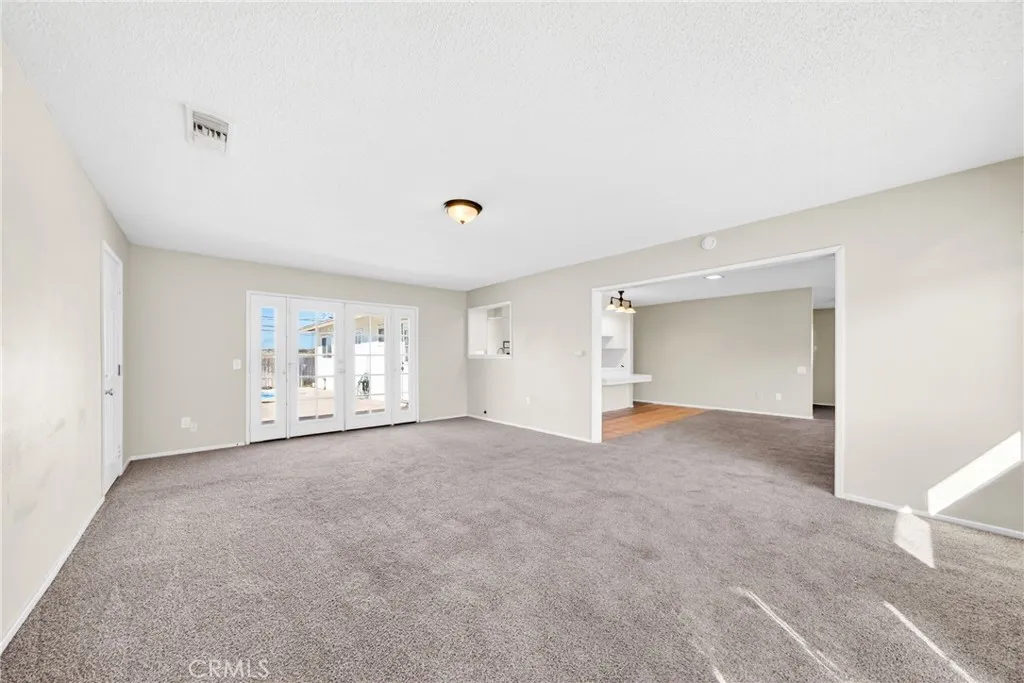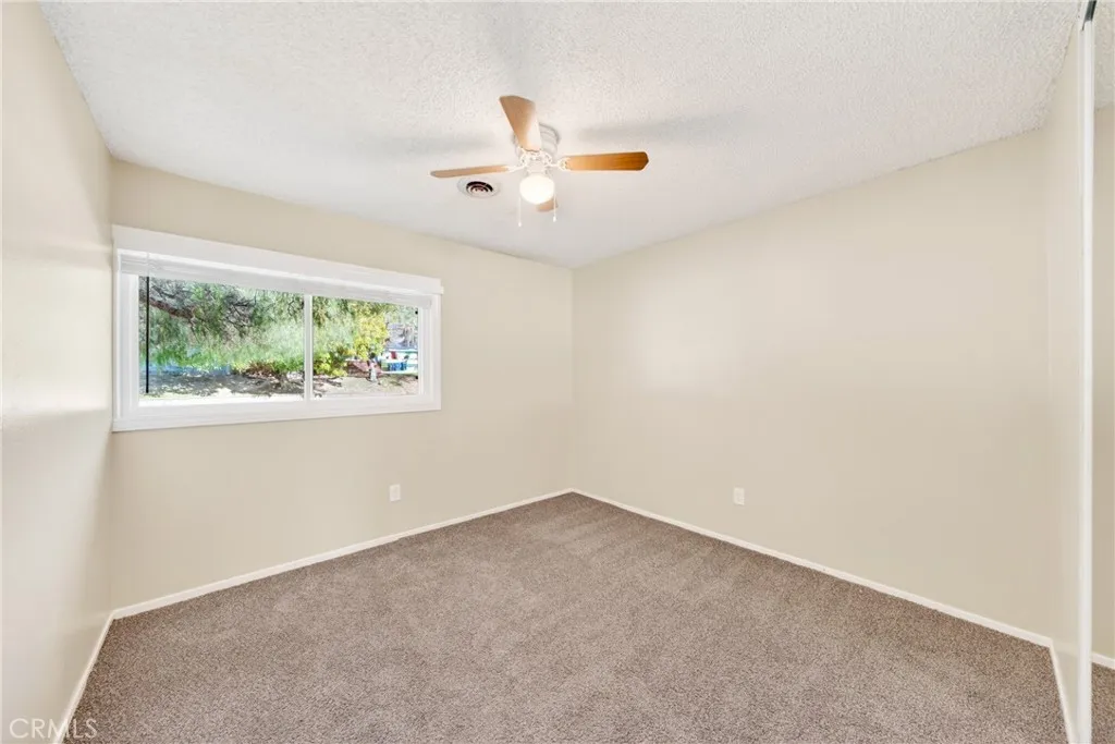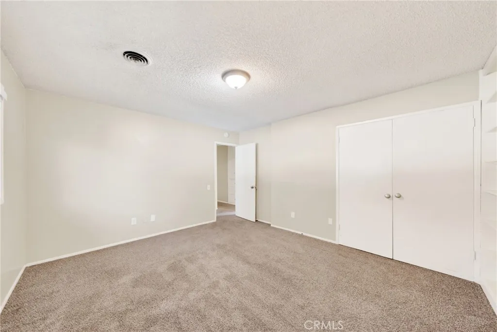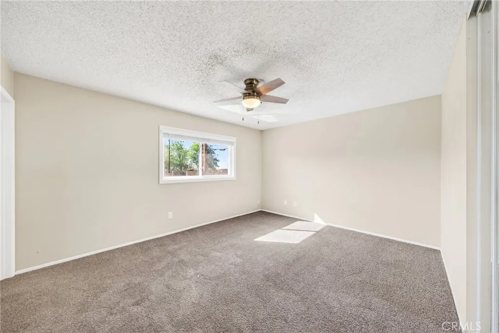 Welcome to this charming single-story home situated on a spacious corner lot in an established San Bernardino neighborhood. With mature trees providing shade and curb appeal, this property offers comfort, functionality, and plenty of potential. Step inside to find freshly updated interior paint, plush carpeting throughout the living areas and bedrooms, and an abundance of natural light from large windows. The spacious living room flows seamlessly into the dining area, creating an open and inviting layout ideal for both everyday living and entertaining. The kitchen features ample cabinetry, generous counter space, classic tile countertops, a gas cooktop, and a functional layout that offers great storage and workspace. Just off the kitchen, a dedicated laundry area adds everyday convenience. This home offers generously sized bedrooms, each complete with ceiling fans, mirrored closet doors, and large windows for natural light. One bedroom features extensive built-in shelving, perfect for a home office, library, or creative space. The primary suite includes ample closet space and an en-suite bathroom with a walk-in shower. A second full bathroom offers dual sinks and a shower/tub combination. Outside, the expansive yard provides endless possibilities whether you envision creating an outdoor entertaining space, adding landscaping, or simply enjoying the shade from mature trees. The corner lot location enhances privacy and curb presence. Conveniently located near schools, parks, shopping, and major commuter routes, this property is a fantastic opportunity for homeowners or inves
