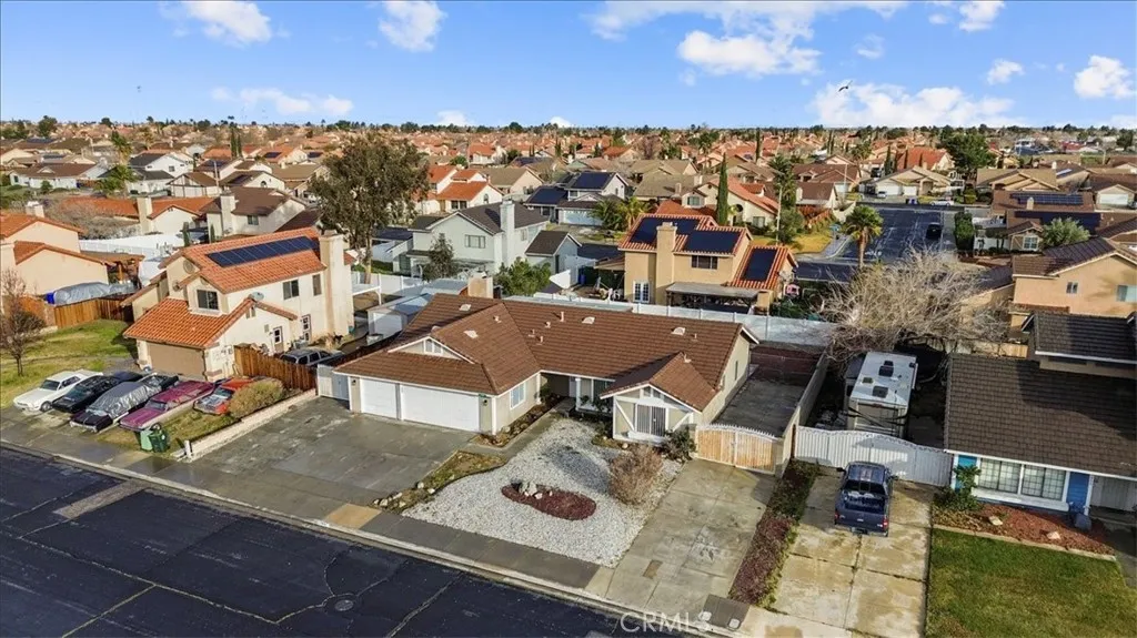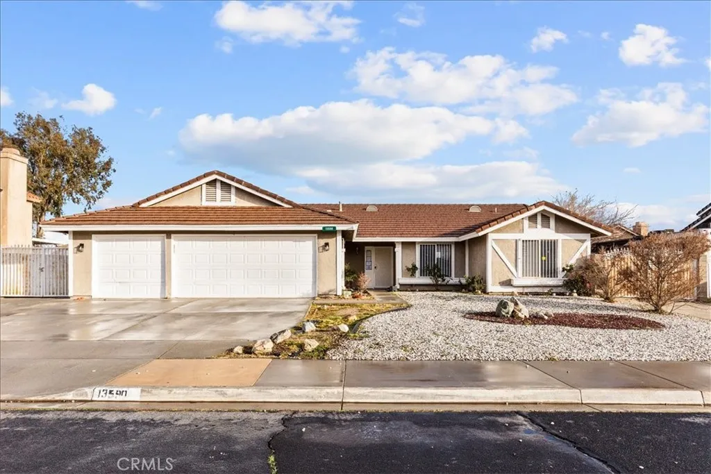 Single story home offering 3 bedrooms and 2 bathrooms with an attached 3-car garage and gated RV parking on an 8,850 square foot lot. 1,584 square feet of living space. Two additional RV friendly driveways provide expanded onsite parking for your RV, boat, trailer, or work vehicles. Single story homes with this level of parking are limited in this area. Vaulted ceilings bring natural light into the main living space. The living room is open and bright. The family and dining area features a fireplace and connects directly to the kitchen for practical daily living. The primary suite includes a walk-in closet and a private bath with dual sinks. Two secondary bedrooms provide flexibility for guests, office use, or long-term needs. The backyard features a large patio and functional outdoor space for gatherings or dining. The front and back yards are finished in rockscape for low maintenance. A hardscaped patio and walkway lead to the front yard, and a dedicated dog run adds function. Central heating and air conditioning provide year-round comfort. Minutes from Victor Valley Mall and positioned between Interstate 15 and Highway 395 for direct commuter access. Schedule your private showing.
