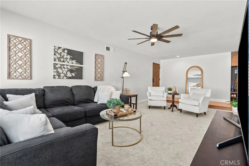 Welcome to this beautifully updated single-story home tucked away on a quiet cul-de-sac. Offering four bedrooms and two full bathrooms, this home has been thoughtfully remodeled with modern finishes and inviting design throughout. Just inside the entry, youll find a custom-designed drop zone that is modern, functional, and beautiful the perfect everyday landing space for bags, shoes, and organization while adding a stylish design element to the home. The completely renovated kitchen is a true standout, featuring quartz countertops, stainless steel appliances, a single-basin sink, abundant cabinetry with pantry storage, and a built-in breakfast bar with seating perfect for casual dining or entertaining. A dedicated coffee and beverage bar with beverage refrigerators adds both style and functionality, creating the ideal setup for morning routines or hosting guests. The open layout is filled with natural light and enhanced by new recessed lighting and updated ceiling fans throughout. Both bathrooms have been fully remodeled, and new luxury vinyl plank flooring flows seamlessly through the main living areas, complemented by new carpet in the living room for added comfort. The versatile fourth bedroom can easily function as a home office and offers direct access to the exterior side yard. Step outside to a very private backyard retreat featuring a covered patio with ceiling fans perfect for year-round enjoyment. The yard is beautifully maintained with lush grass and provides plenty of space for relaxing or entertaining. The spacious front yard offers a generous grassy area, e